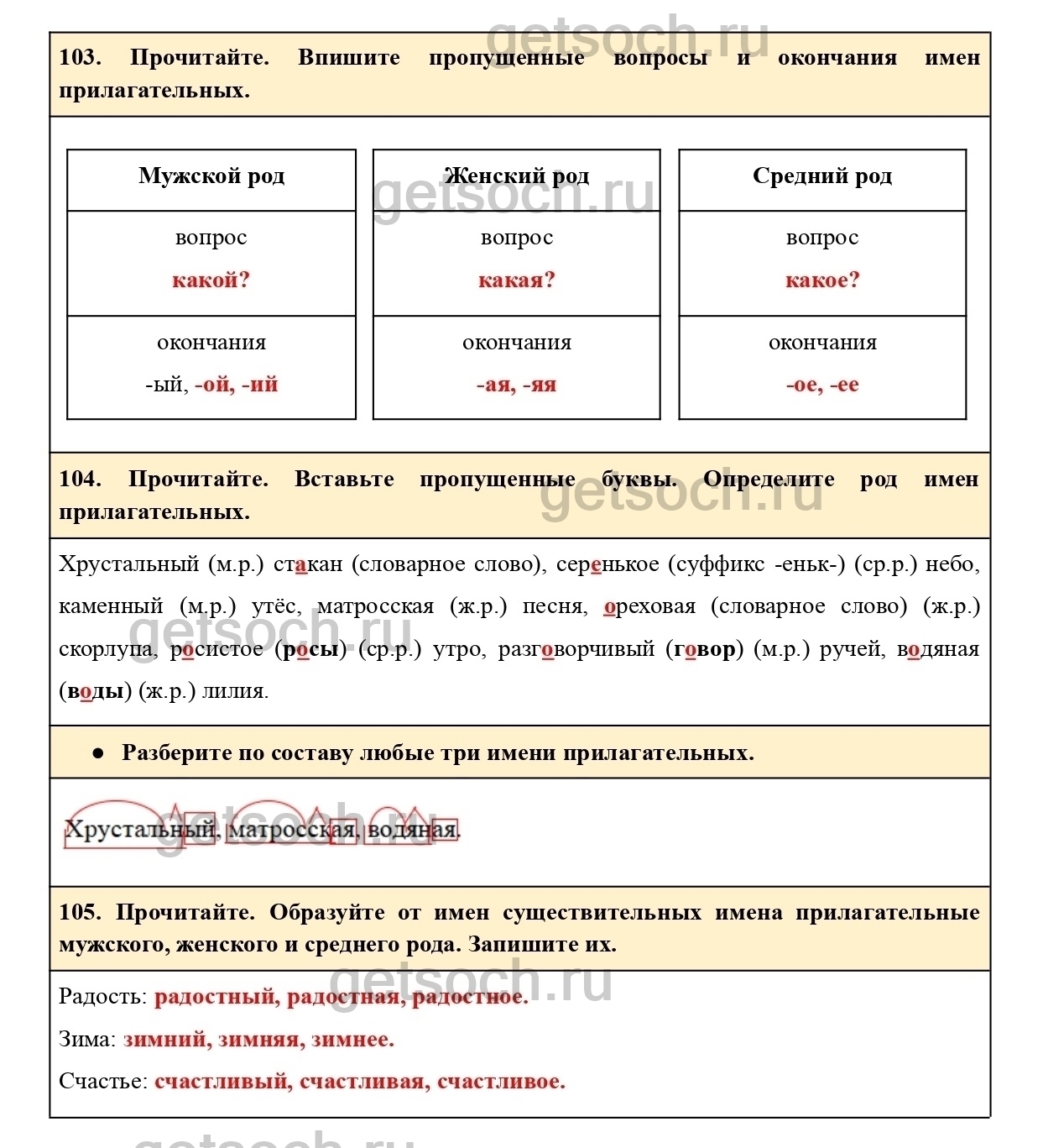105. Прочитайте. Образуйте от имен существительных имена прилагательные мужского, женского и среднего рода. Запишите их.