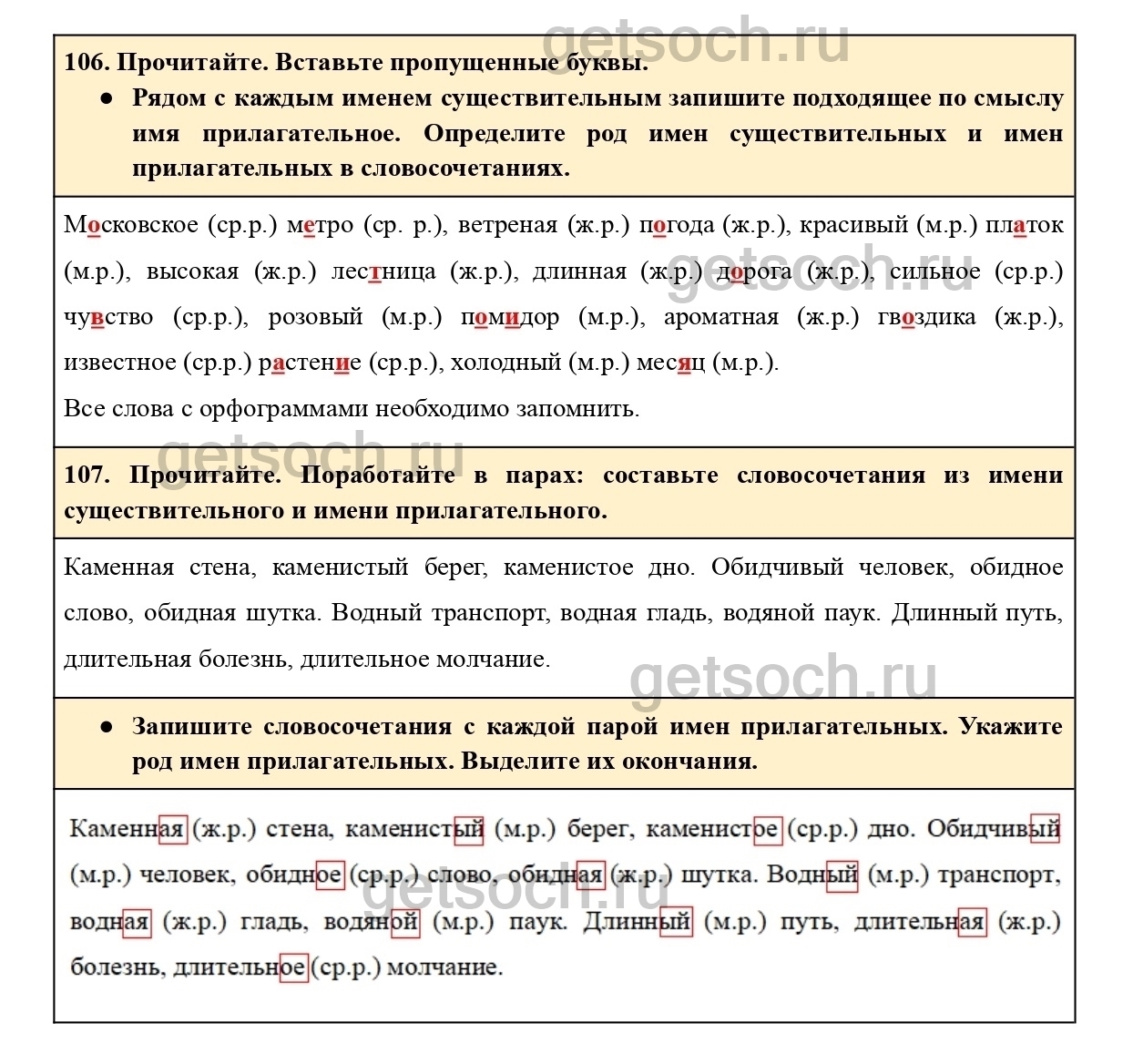 107. Прочитайте. Поработайте в парах: составьте словосочетания из имени существительного и имени прилагательного.