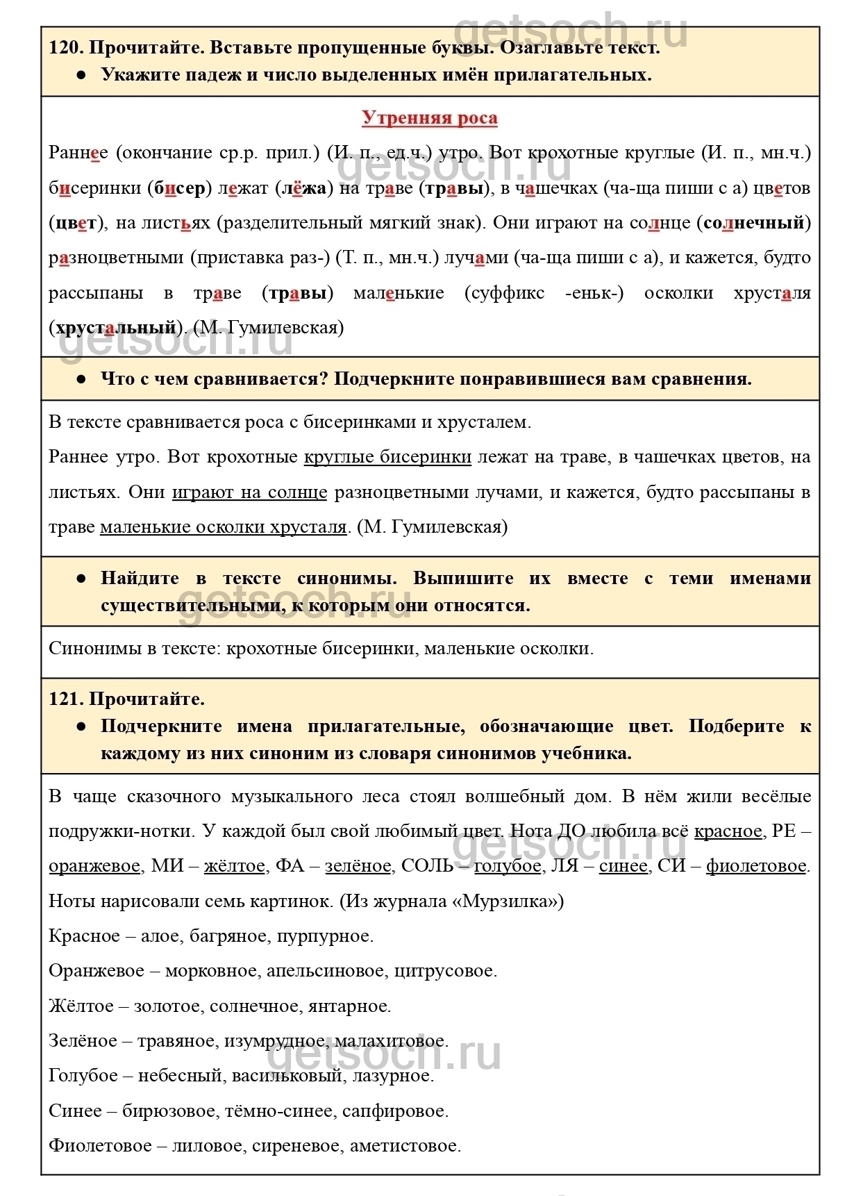 Подчеркните имена прилагательные, обозначающие цвет. Подберите к каждому из них синоним из словаря синонимов учебника.”