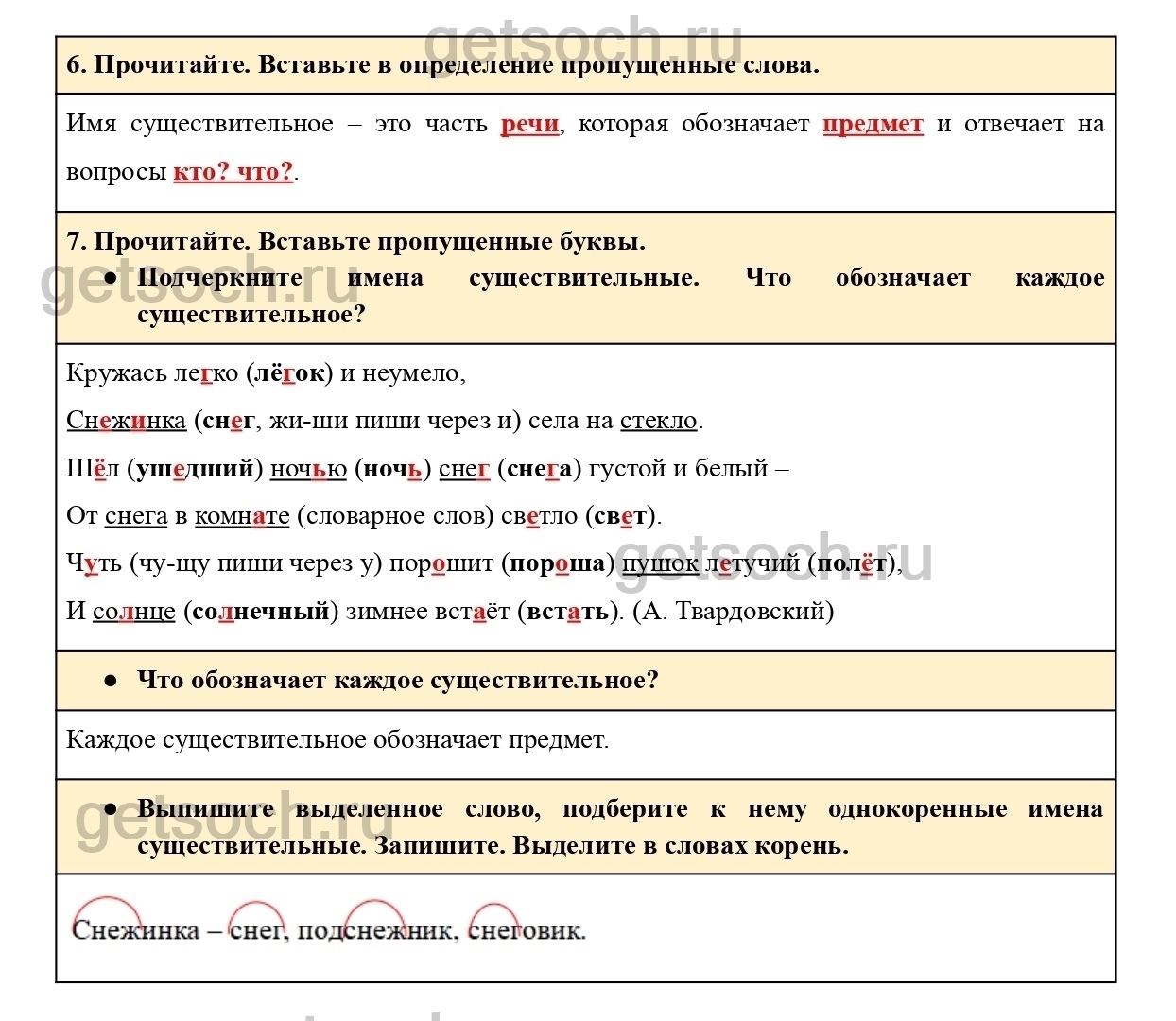 Рассмотрим ответы на Страница 6 из рабочей тетради по русскому языку для 3 класса Канакиной