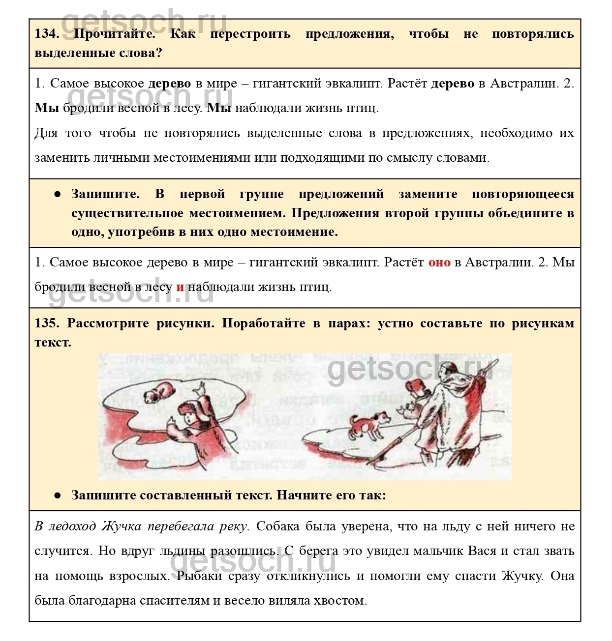 134. Прочитайте. Как перестроить предложения, чтобы не повторялись выделенные слова?