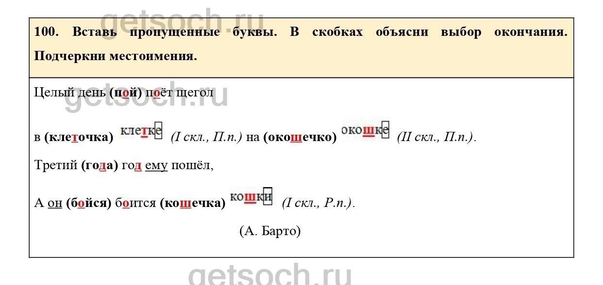100. Вставь пропущенные буквы. В скобках объясни выбор окончания. Подчеркни местоимения.