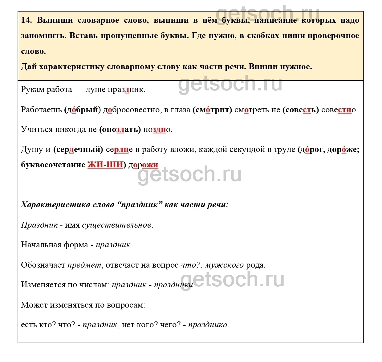 Рассмотрим ответы на Упражнение 14 из тетради для самостоятельной работы по русскому языку для 3 класса Байковой