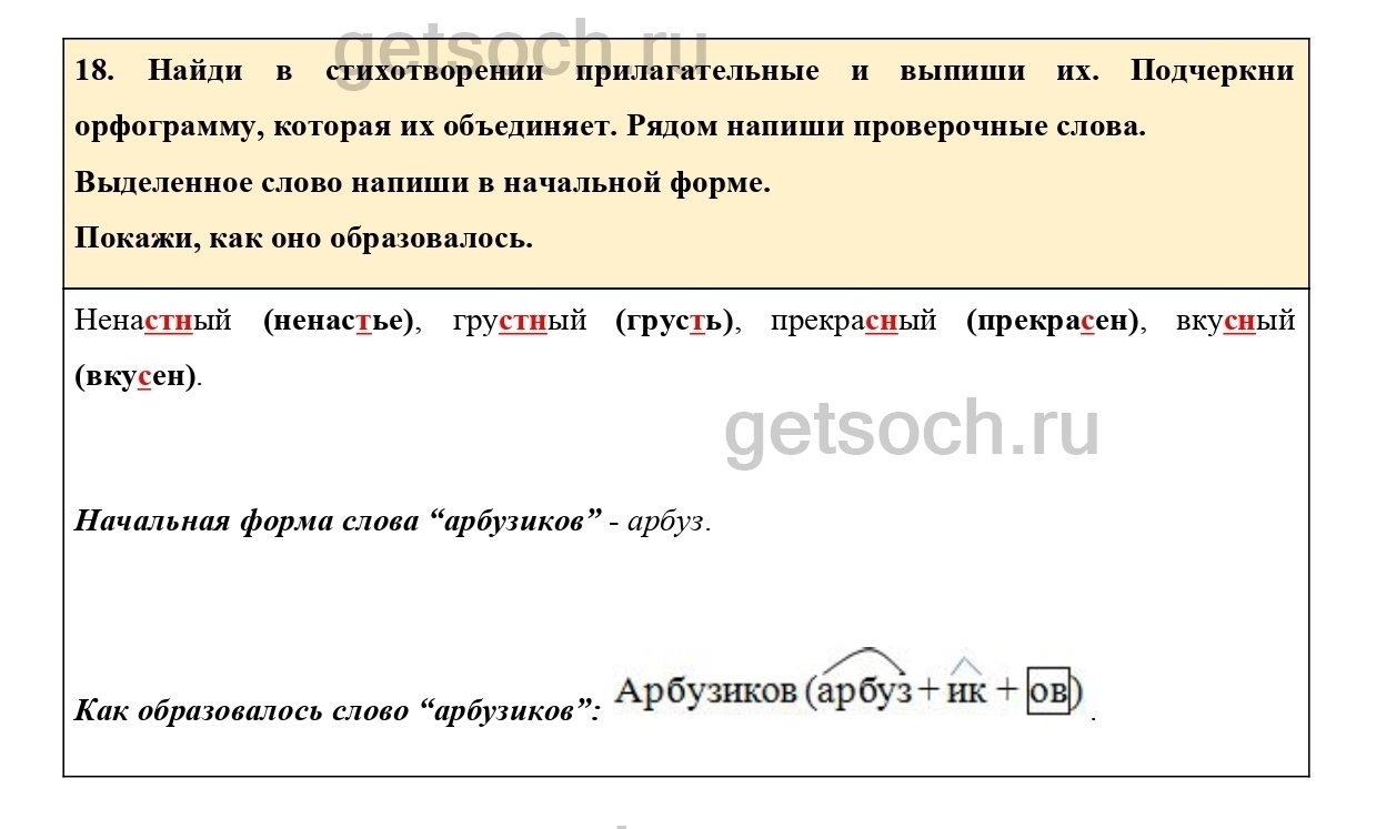 Рассмотрим ответы на Упражнение 18 из тетради для самостоятельной работы по русскому языку для 3 класса Байковой