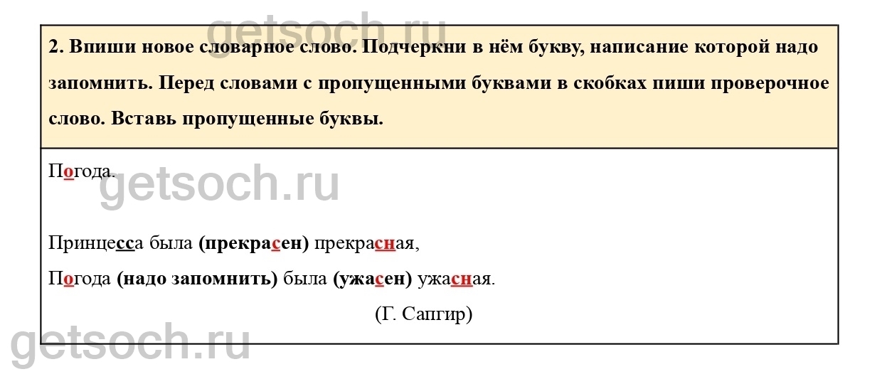 2. Впиши новое словарное слово. Подчеркни в нём букву, написание которой надо запомнить. Перед словами с пропущенными буквами в скобках пиши проверочное слово. Вставь пропущенные буквы.
