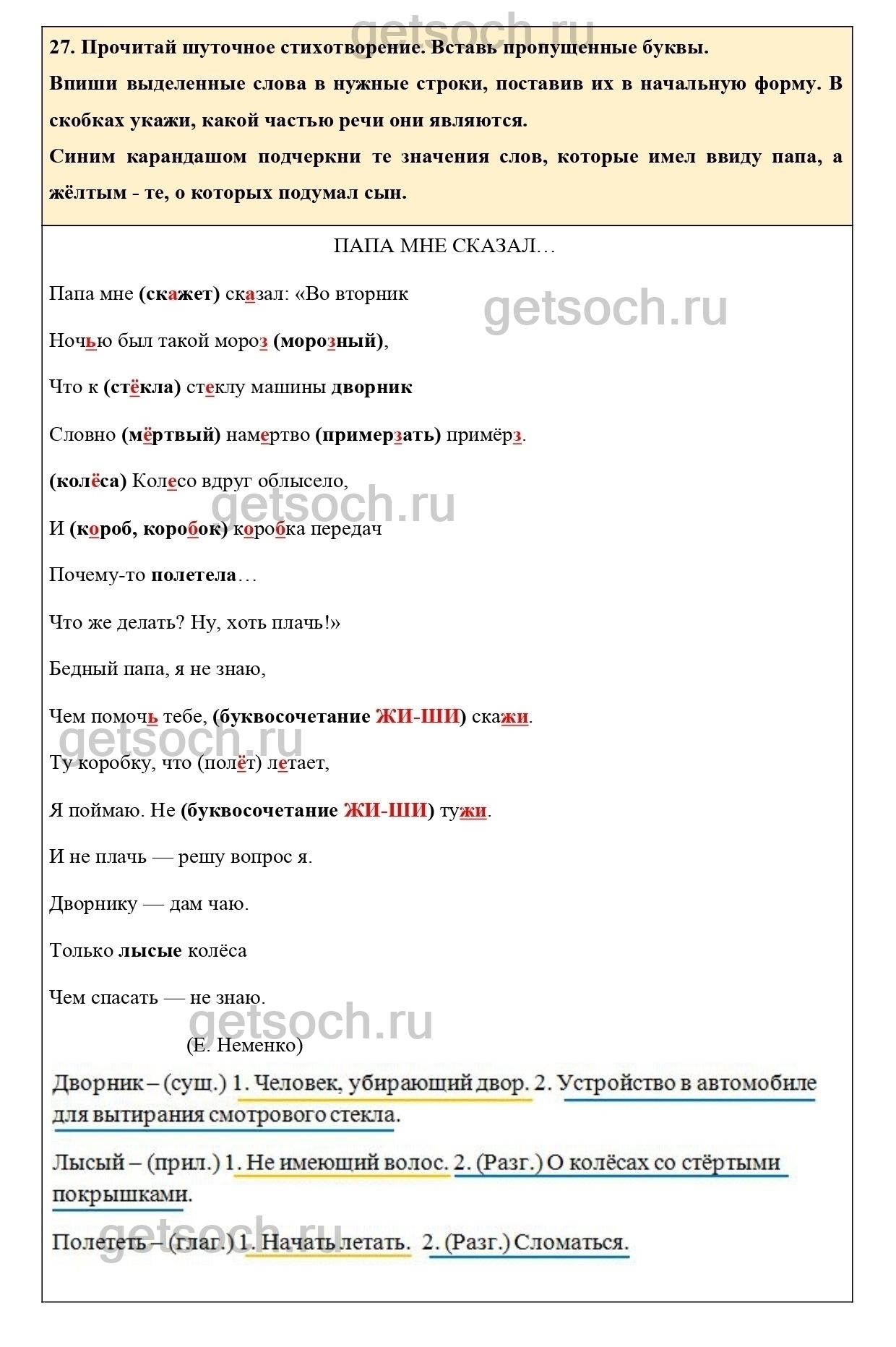 27. Прочитай шуточное стихотворение. Вставь пропущенные буквы.