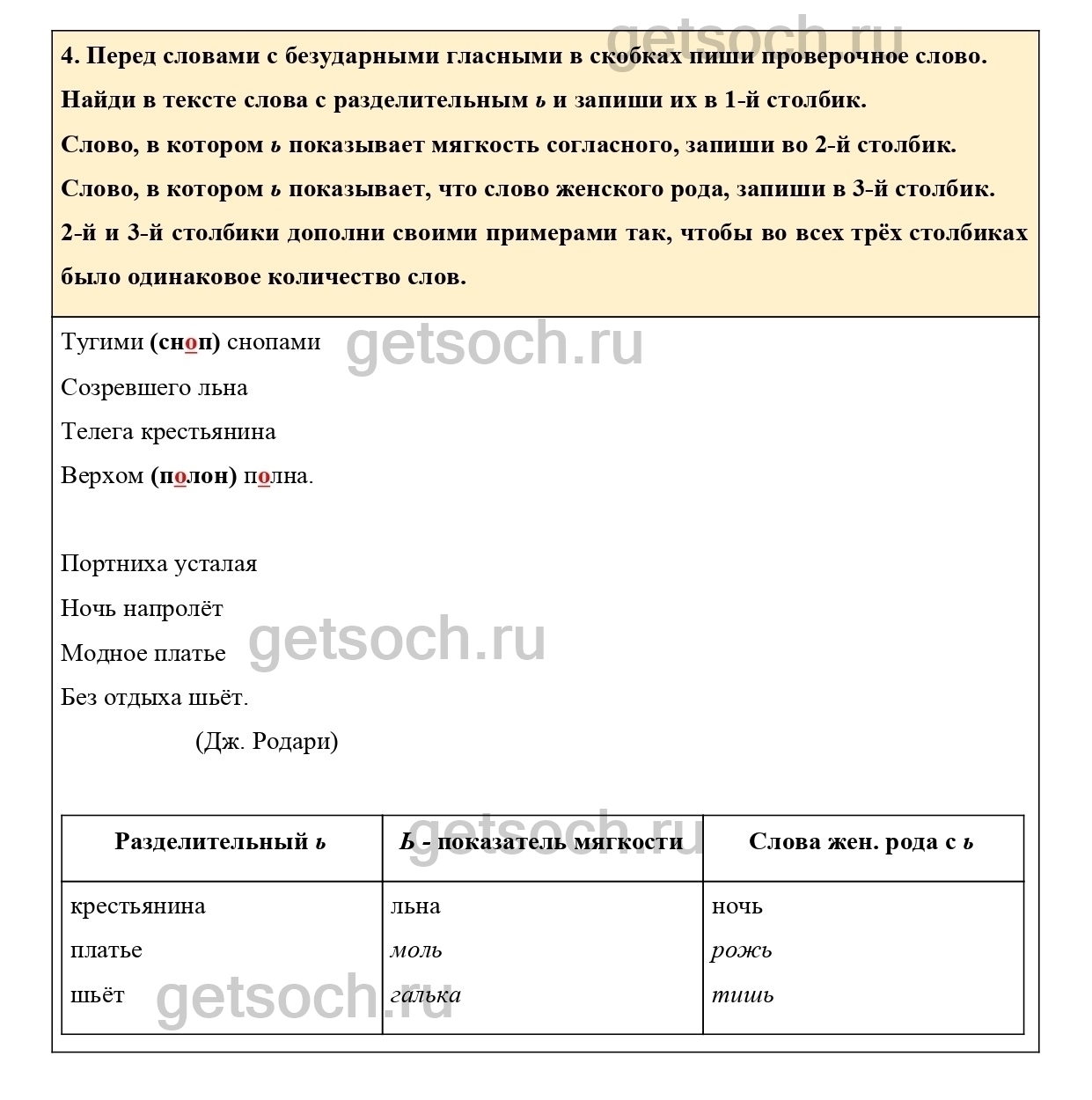 Найди в тексте слова с разделительным ь и запиши их в 1-й столбик.