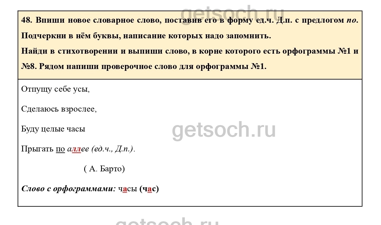 Рассмотрим ответы на Упражнение 48 из тетради для самостоятельной работы по русскому языку для 3 класса Байковой