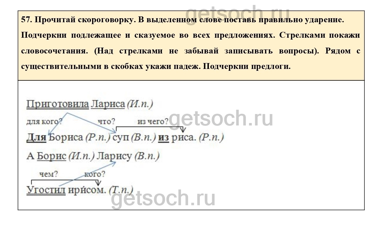 Рассмотрим ответы на Упражнение 57 из тетради для самостоятельной работы по русскому языку для 3 класса Байковой