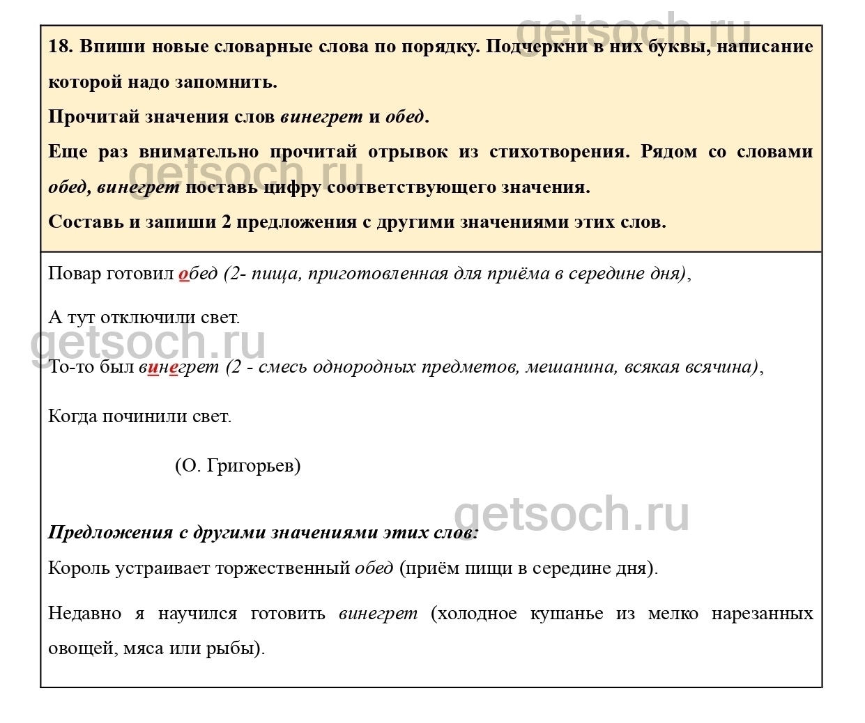 Еще раз внимательно прочитай отрывок из стихотворения. Рядом со словами обед, винегрет поставь цифру соответствующего значения.