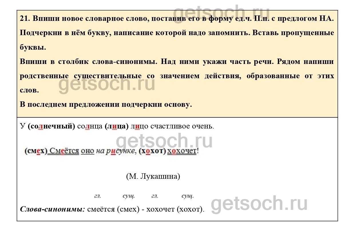 Рассмотрим ответы на Упражнение 21 из тетради для самостоятельной работы по русскому языку для 3 класса Байковой