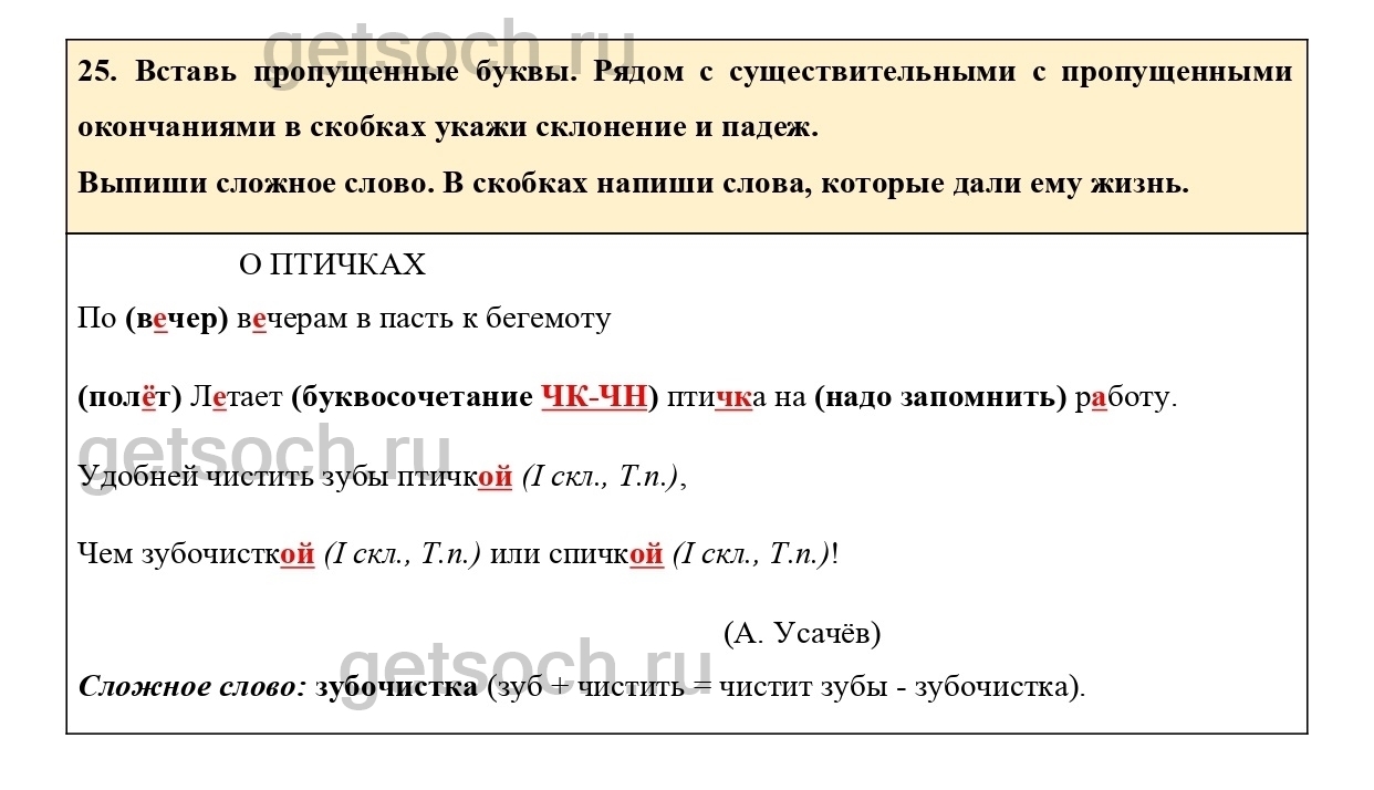 Рассмотрим ответы на Упражнение 25 из тетради для самостоятельной работы по русскому языку для 3 класса Байковой