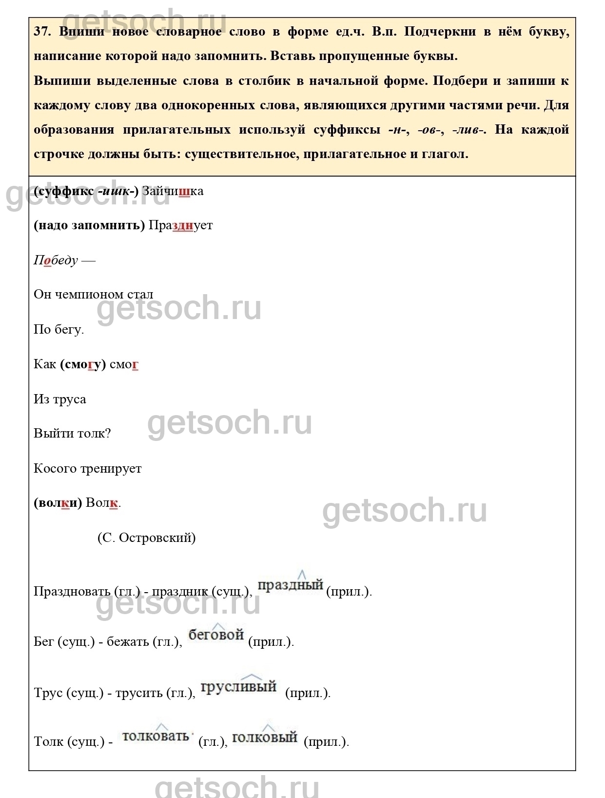 Рассмотрим ответы на Упражнение 37 из тетради для самостоятельной работы по русскому языку для 3 класса Байковой