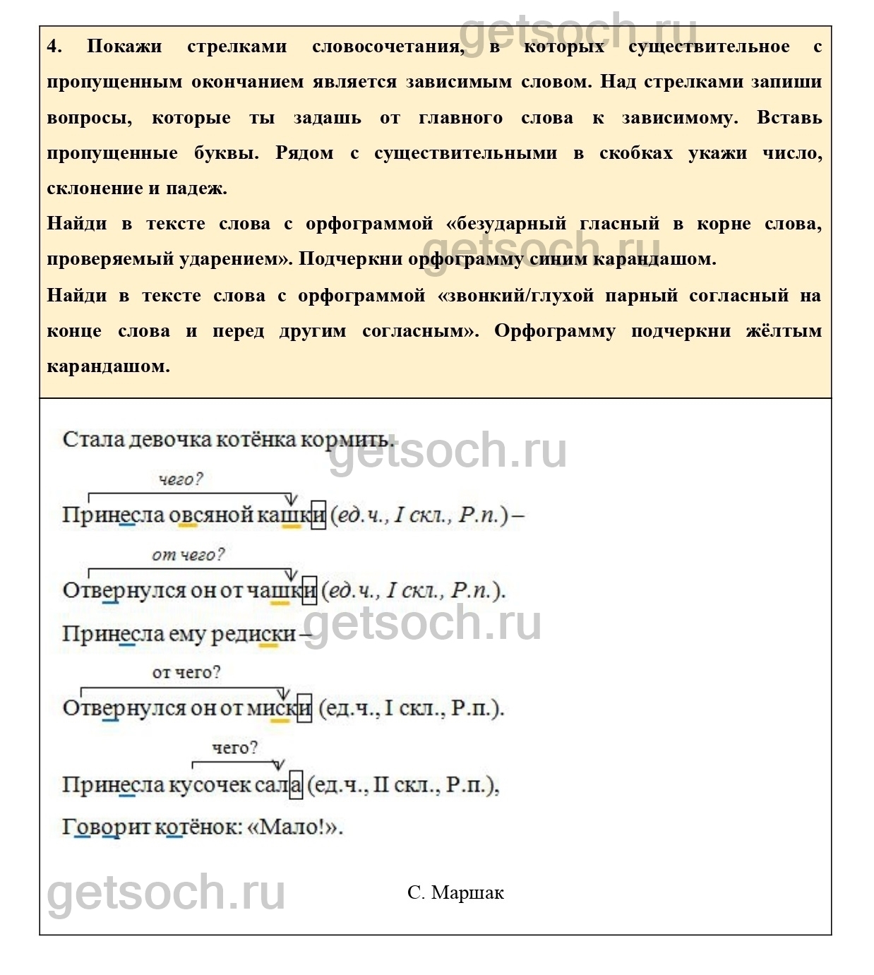 Рассмотрим ответы на Упражнение 4 из тетради для самостоятельной работы по русскому языку для 3 класса Байковой