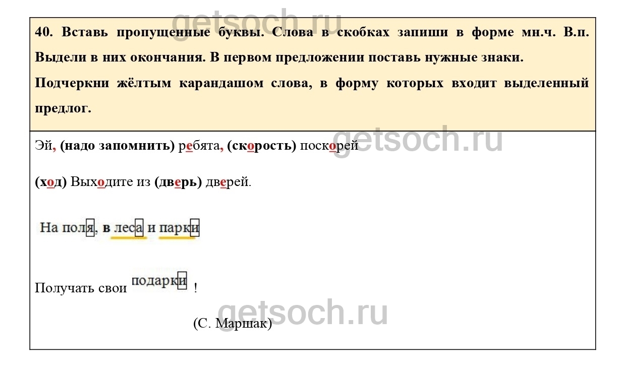 Рассмотрим ответы на Упражнение 40 из тетради для самостоятельной работы по русскому языку для 3 класса Байковой