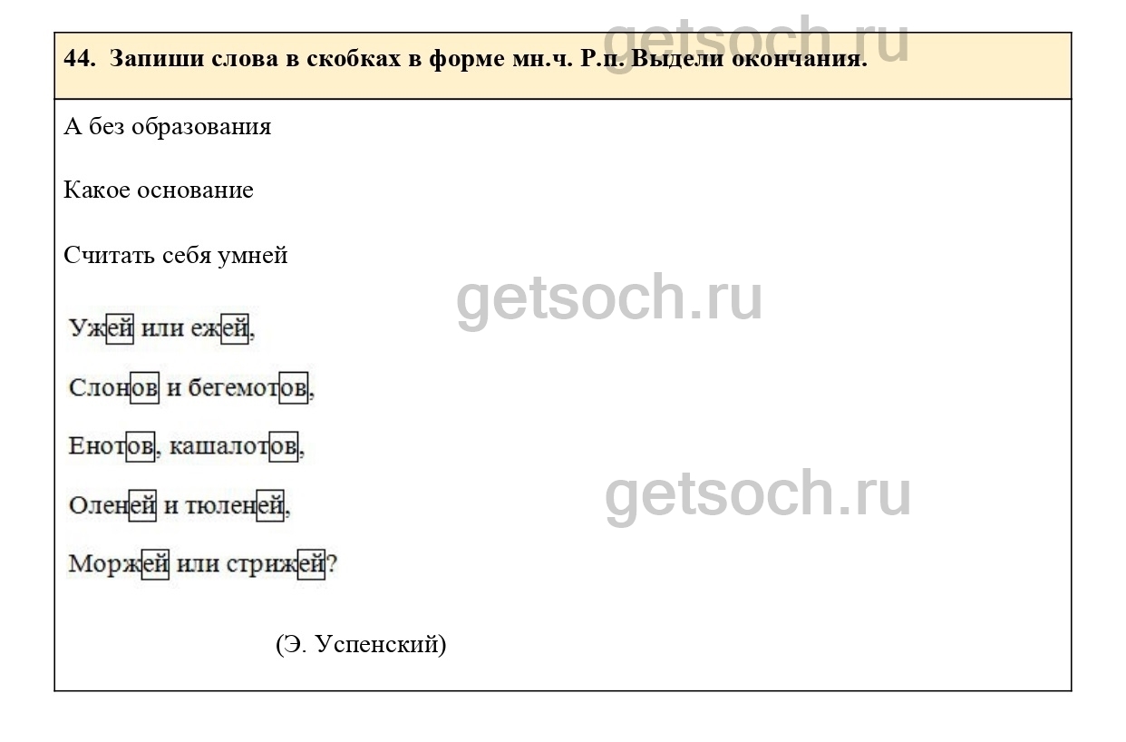 44. Запиши слова в скобках в форме мн.ч. Р.п. Выдели окончания.