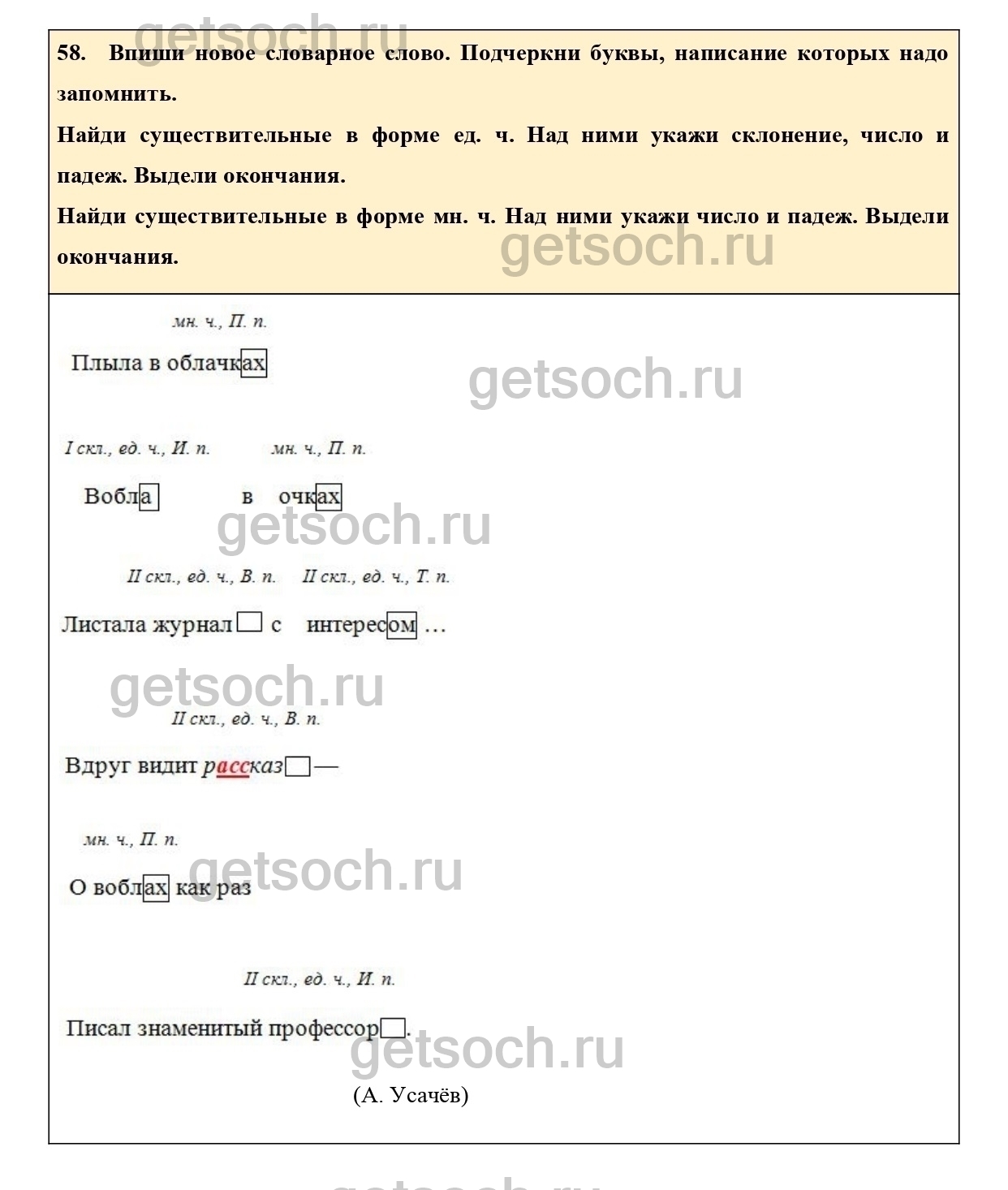 Рассмотрим ответы на Упражнение 58 из тетради для самостоятельной работы по русскому языку для 3 класса Байковой