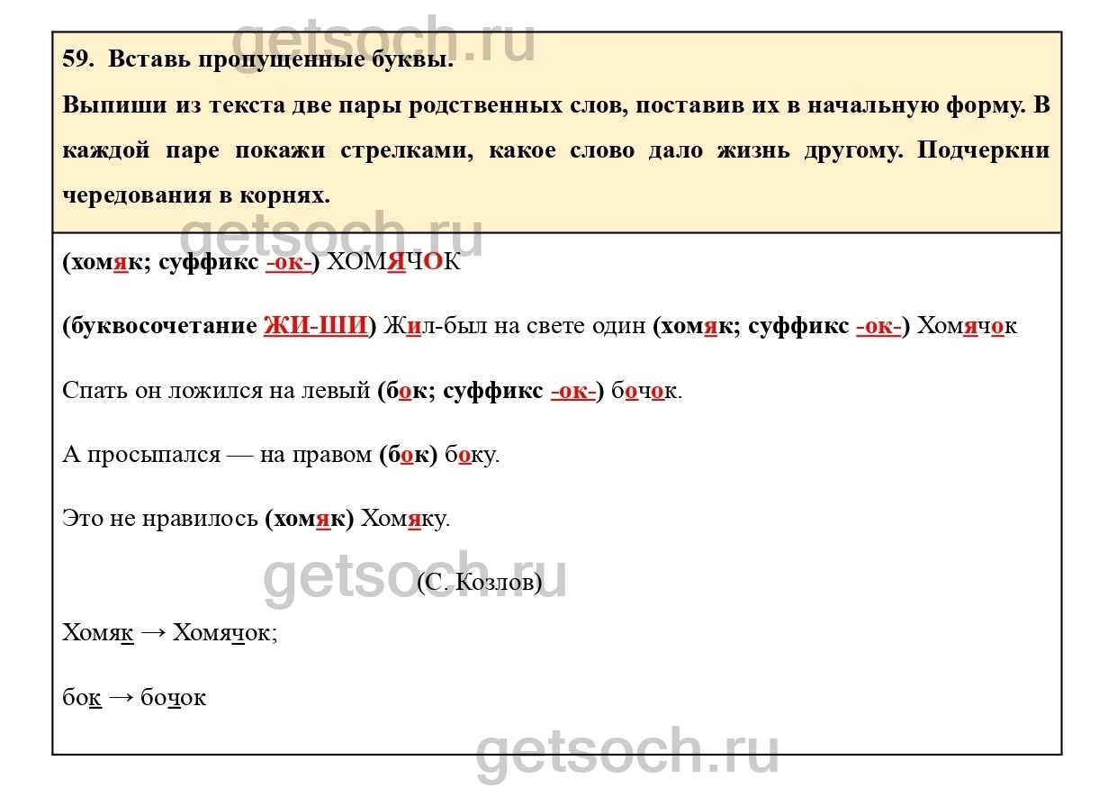 Рассмотрим ответы на Упражнение 59 из тетради для самостоятельной работы по русскому языку для 3 класса Байковой
