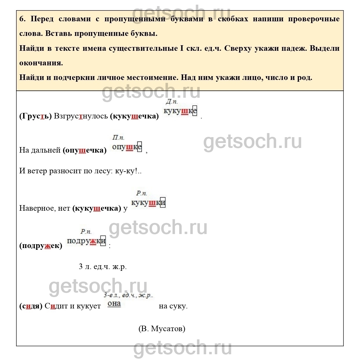 Рассмотрим ответы на Упражнение 6 из тетради для самостоятельной работы по русскому языку для 3 класса Байковой