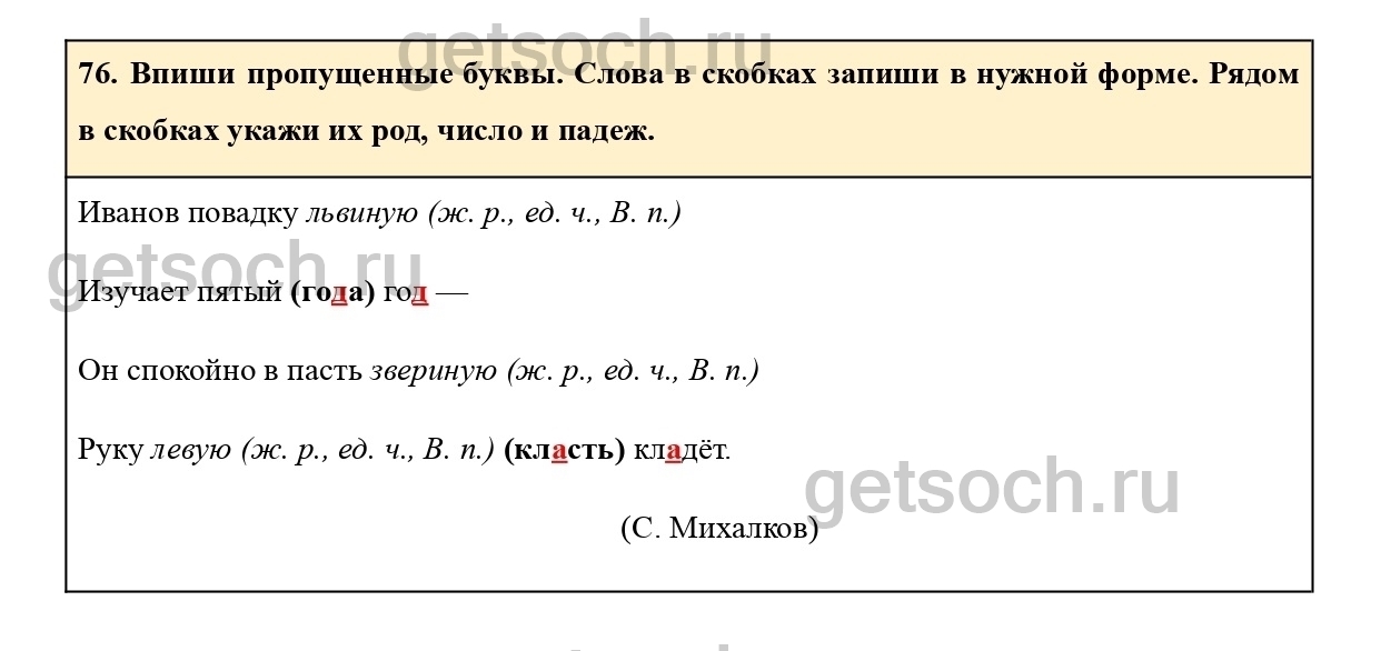 Рассмотрим ответы на Упражнение 76 из тетради для самостоятельной работы по русскому языку для 3 класса Байковой