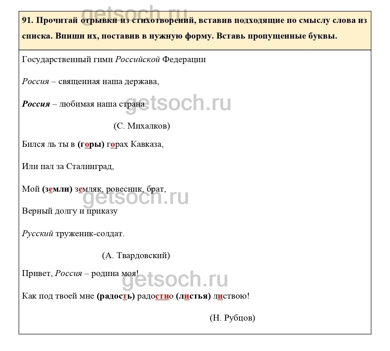 91. Прочитай отрывки из стихотворений, вставив подходящие по смыслу слова из списка. Впиши их, поставив в нужную форму. Вставь пропущенные буквы.