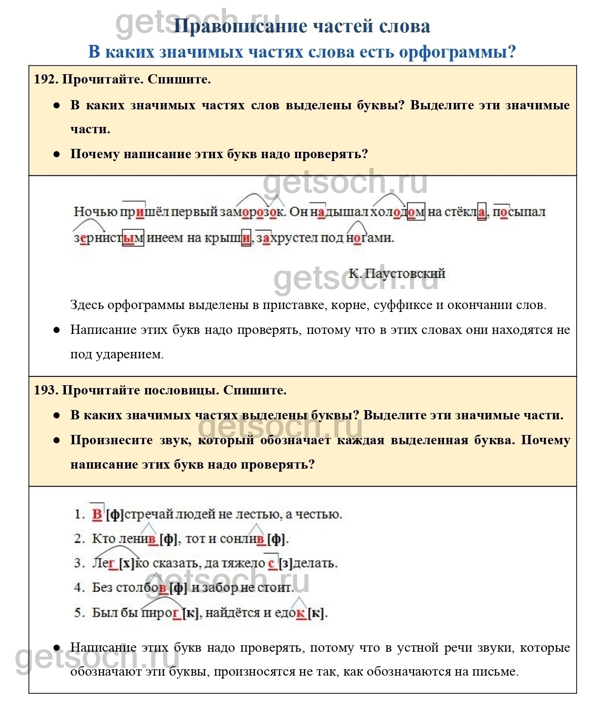 В каких значимых частях слов выделены буквы? Выделите эти значимые части.