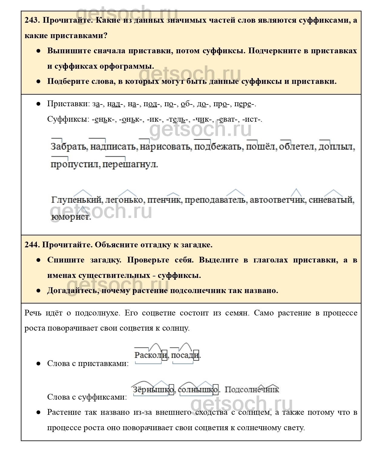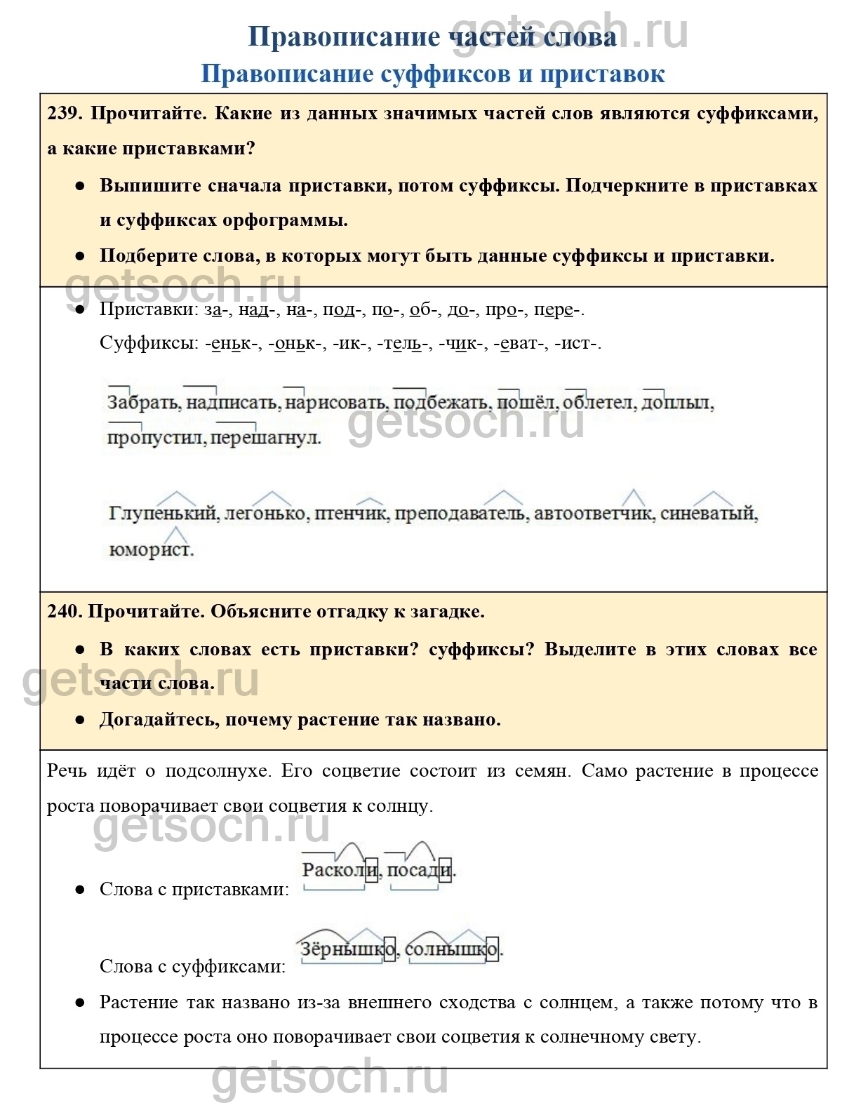 239. Прочитайте. Какие из данных значимых частей слов являются суффиксами, а какие приставками?