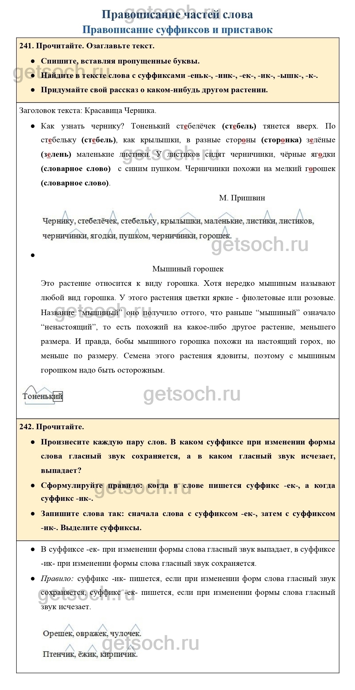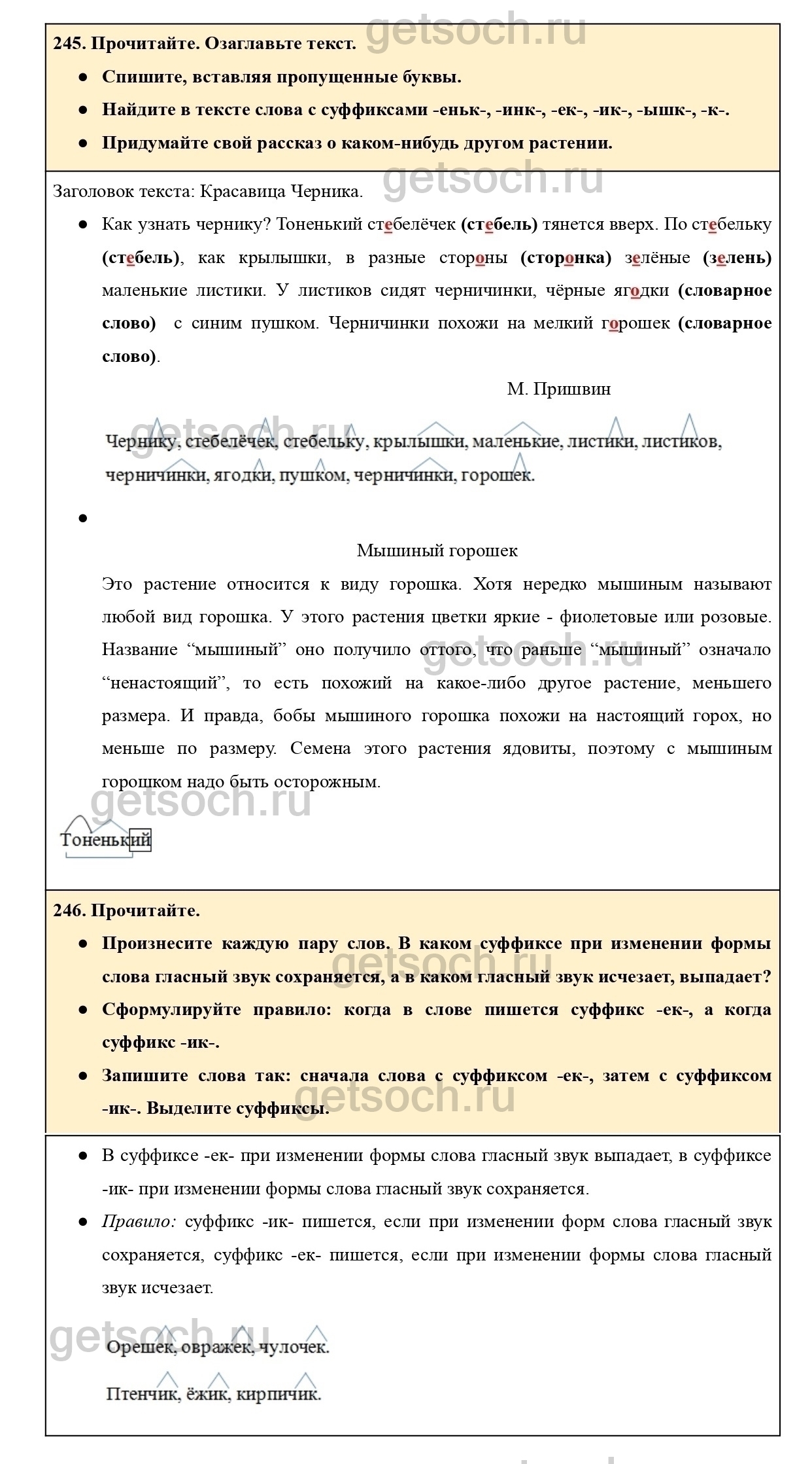 Произнесите каждую пару слов. В каком суффиксе при изменении формы слова гласный звук сохраняется, а в каком гласный звук исчезает, выпадает?