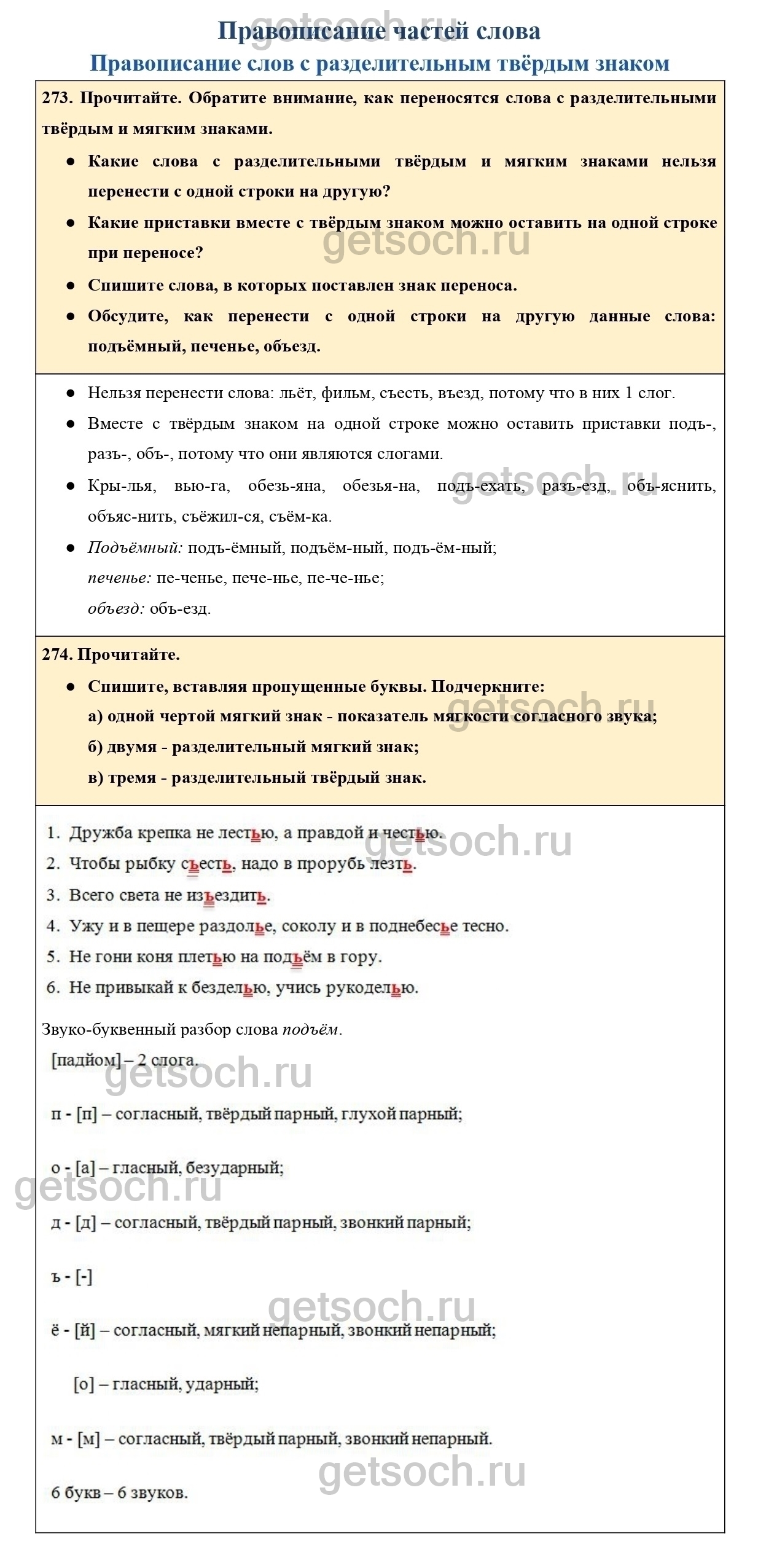 273. Прочитайте. Обратите внимание, как переносятся слова с разделительными твёрдым и мягким знаками.