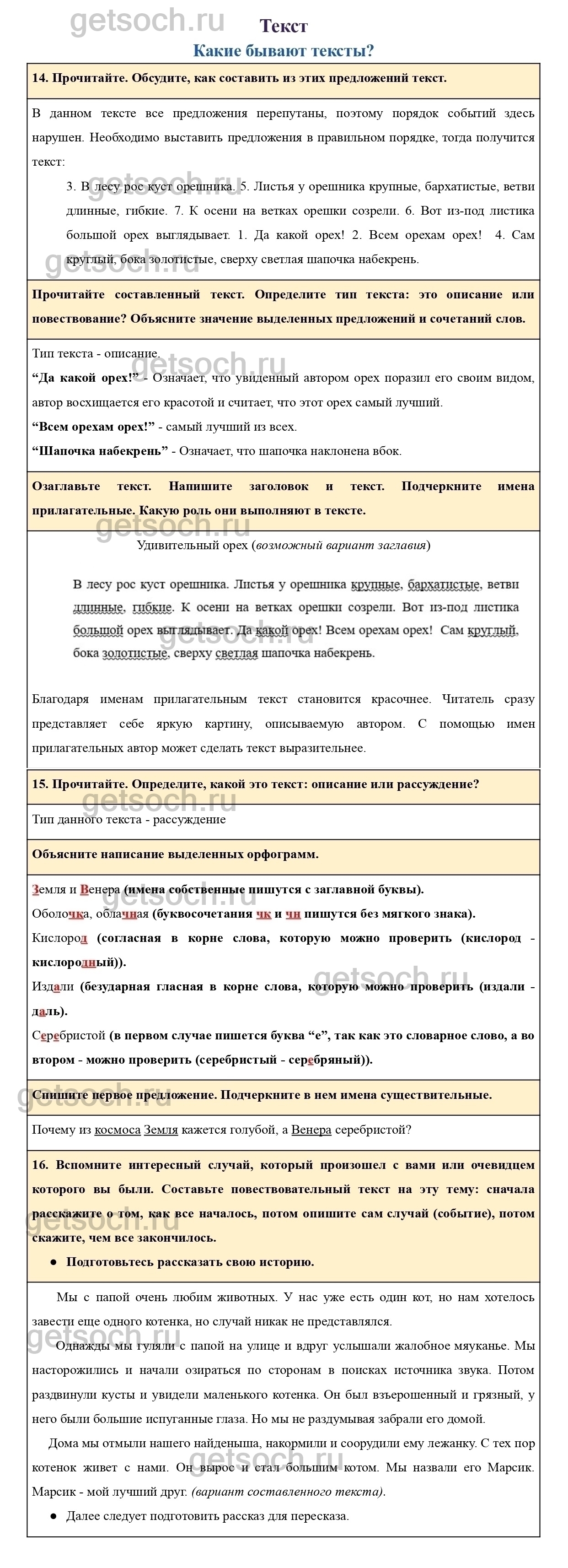 Рассмотрим ответы на Страница 14 из учебника по русскому языку для 3 класса Канакиной