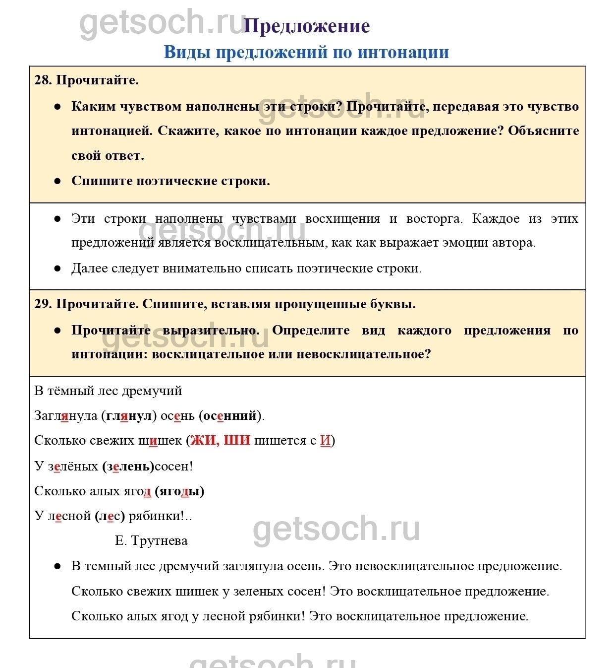 29. Прочитайте. Спишите, вставляя пропущенные буквы.