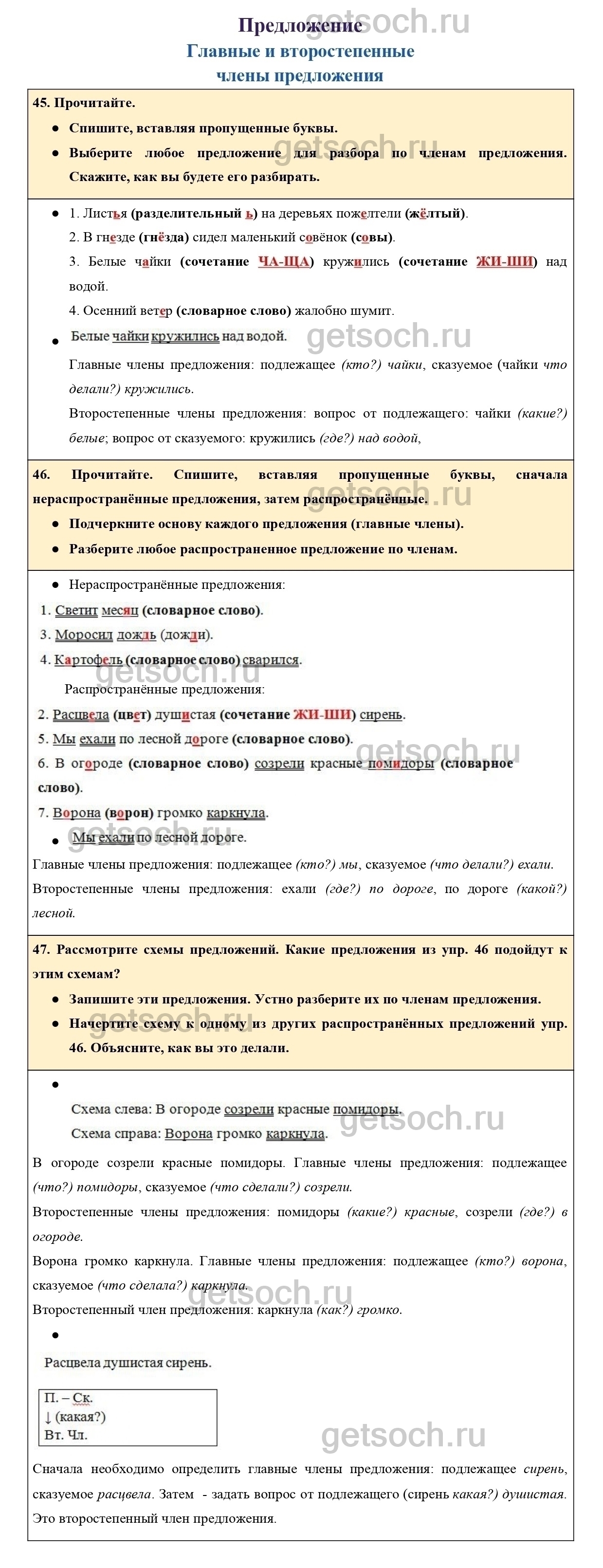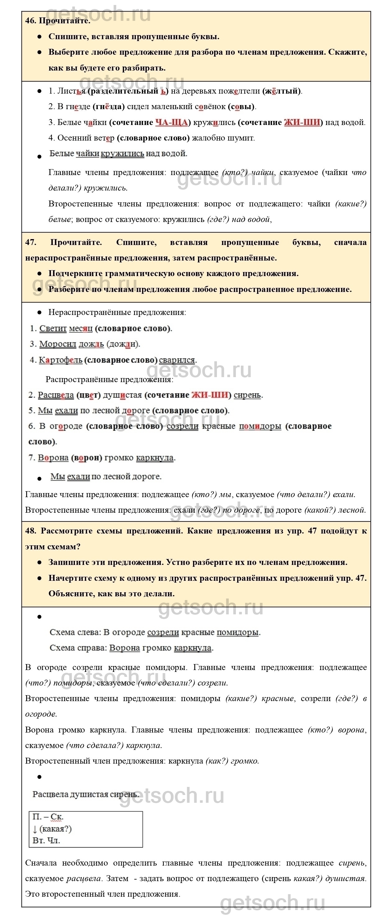 46. Прочитайте. Спишите, вставляя пропущенные буквы, сначала нераспространённые предложения, затем распространённые.