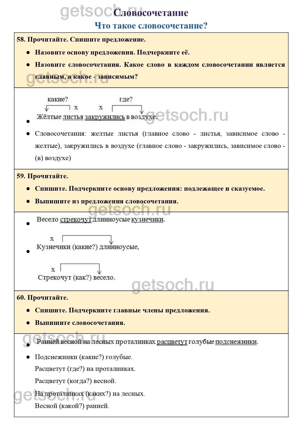 Назовите словосочетания. Какое слово в каждом словосочетании является главным, а какое – зависимым?”