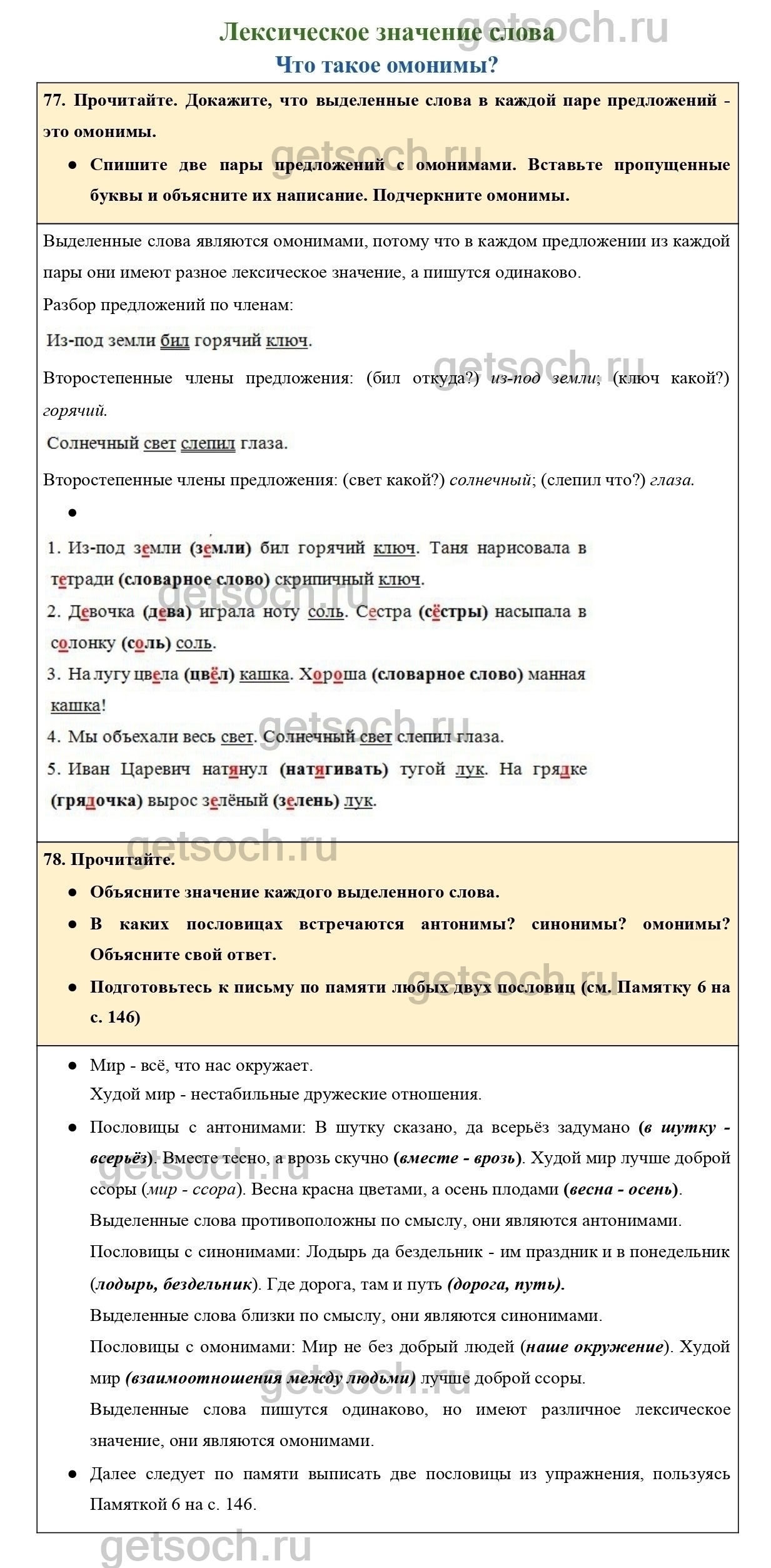 77. Прочитайте. Докажите, что выделенные слова в каждой паре предложений – это омонимы.