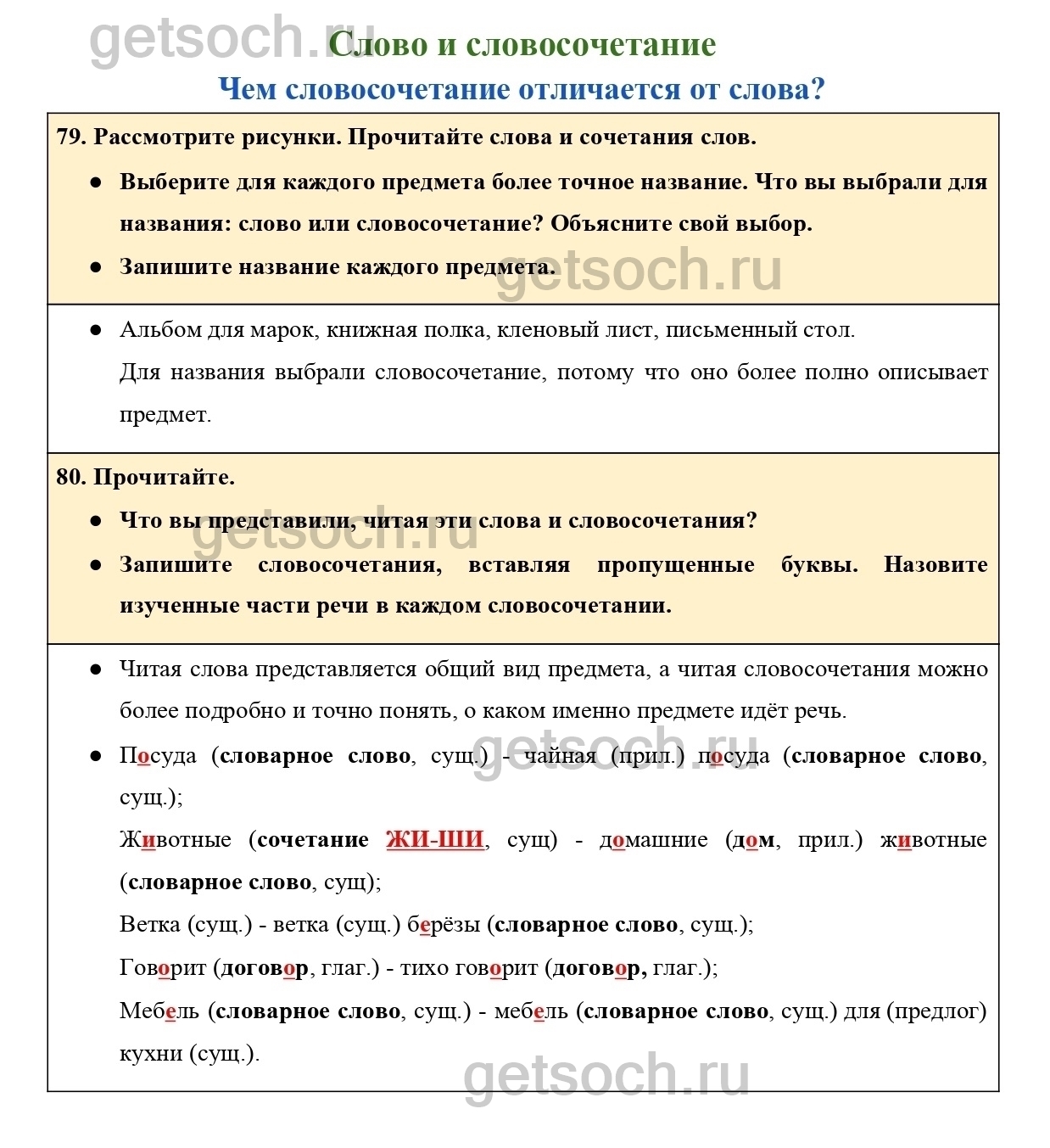 79. Рассмотрите рисунки. Прочитайте слова и сочетания слов.