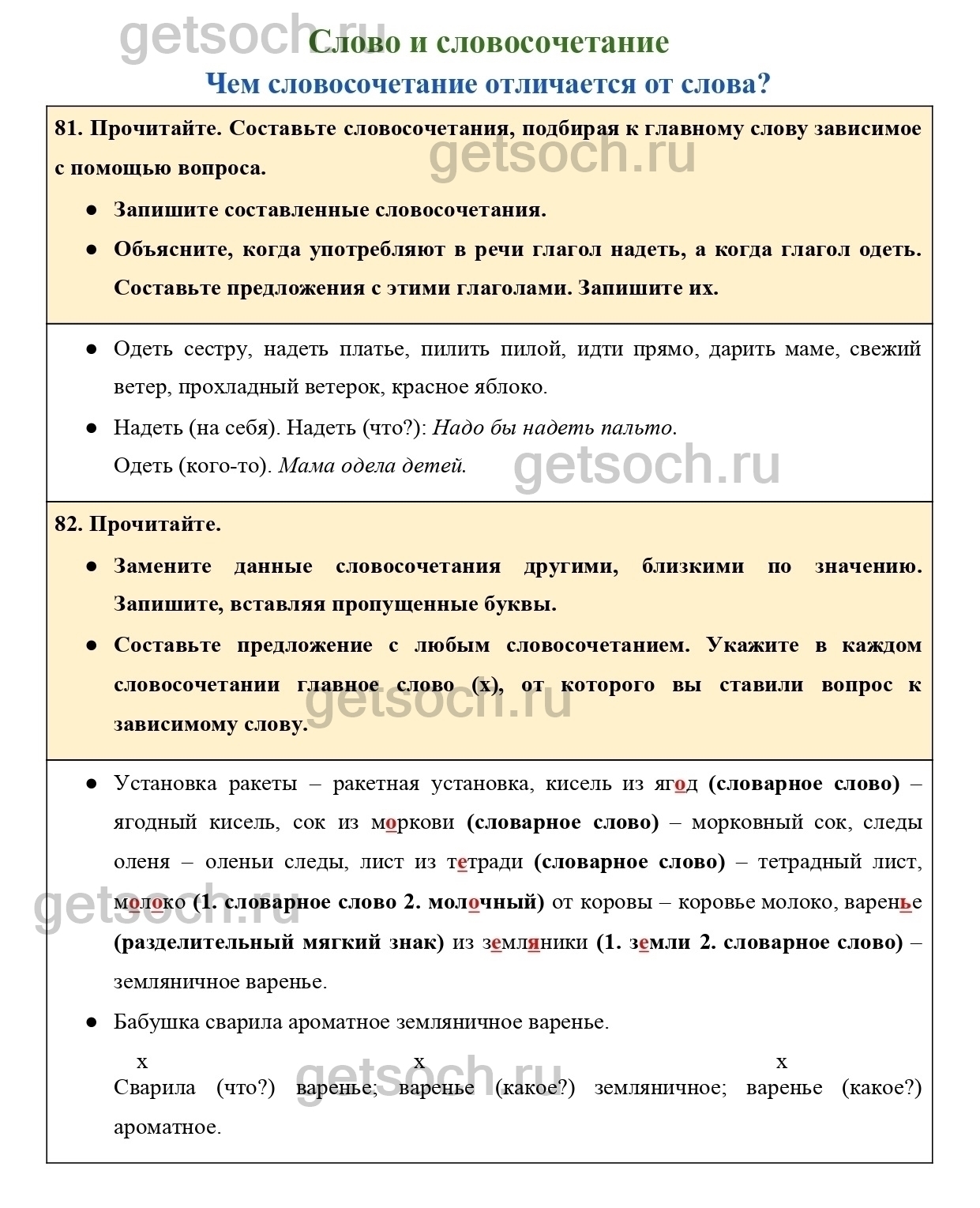 81. Прочитайте. Составьте словосочетания, подбирая к главному слову зависимое с помощью вопроса.