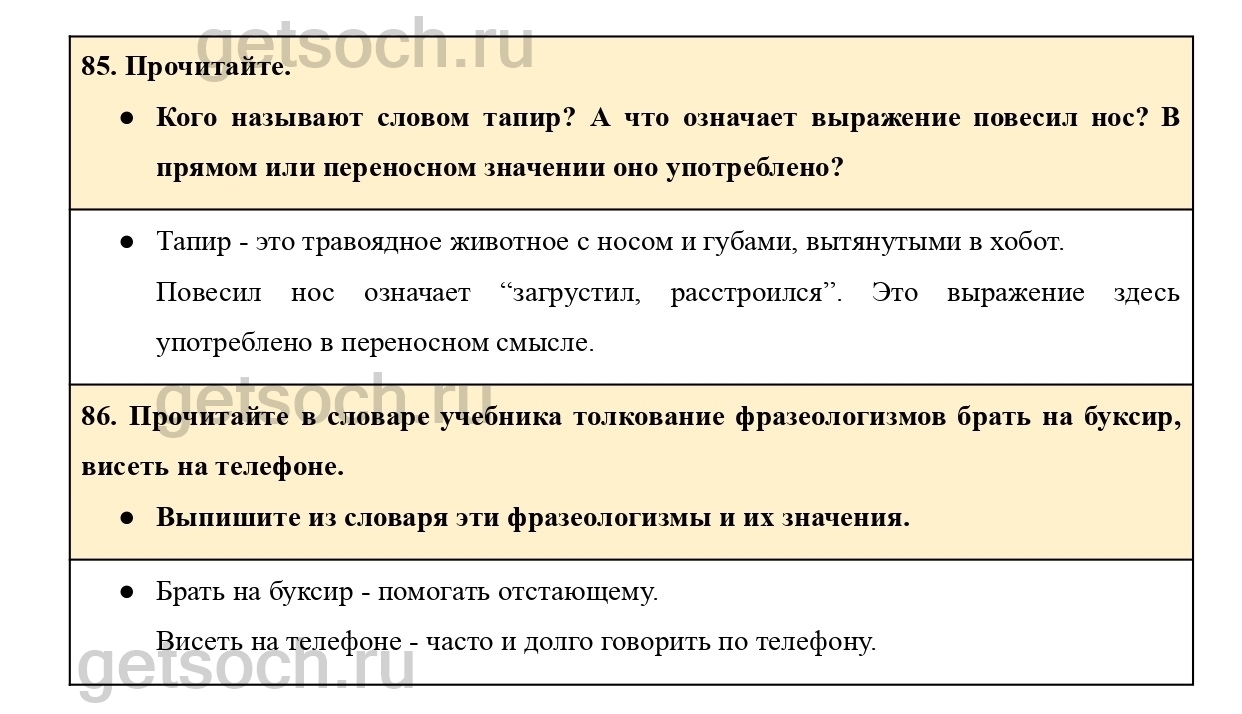 84. Прочитайте в словаре учебника толкование фразеологизмов брать на буксир, висеть на телефоне.