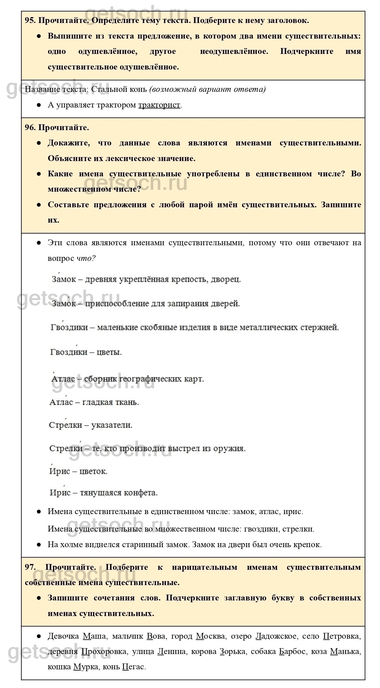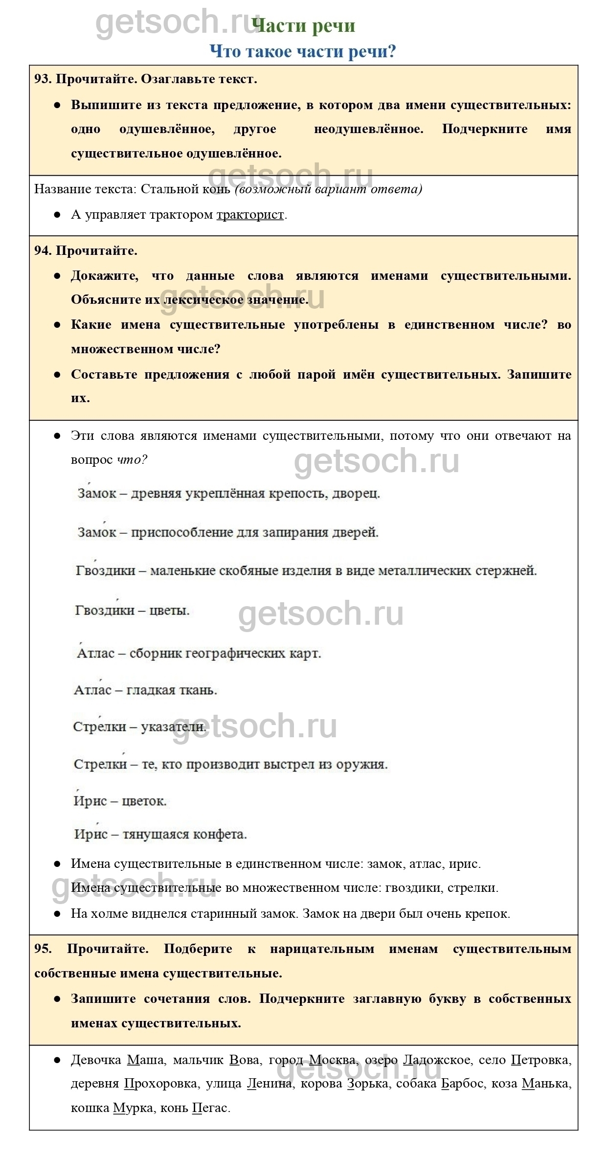 95. Прочитайте. Подберите к нарицательным именам существительным собственные имена существительные.