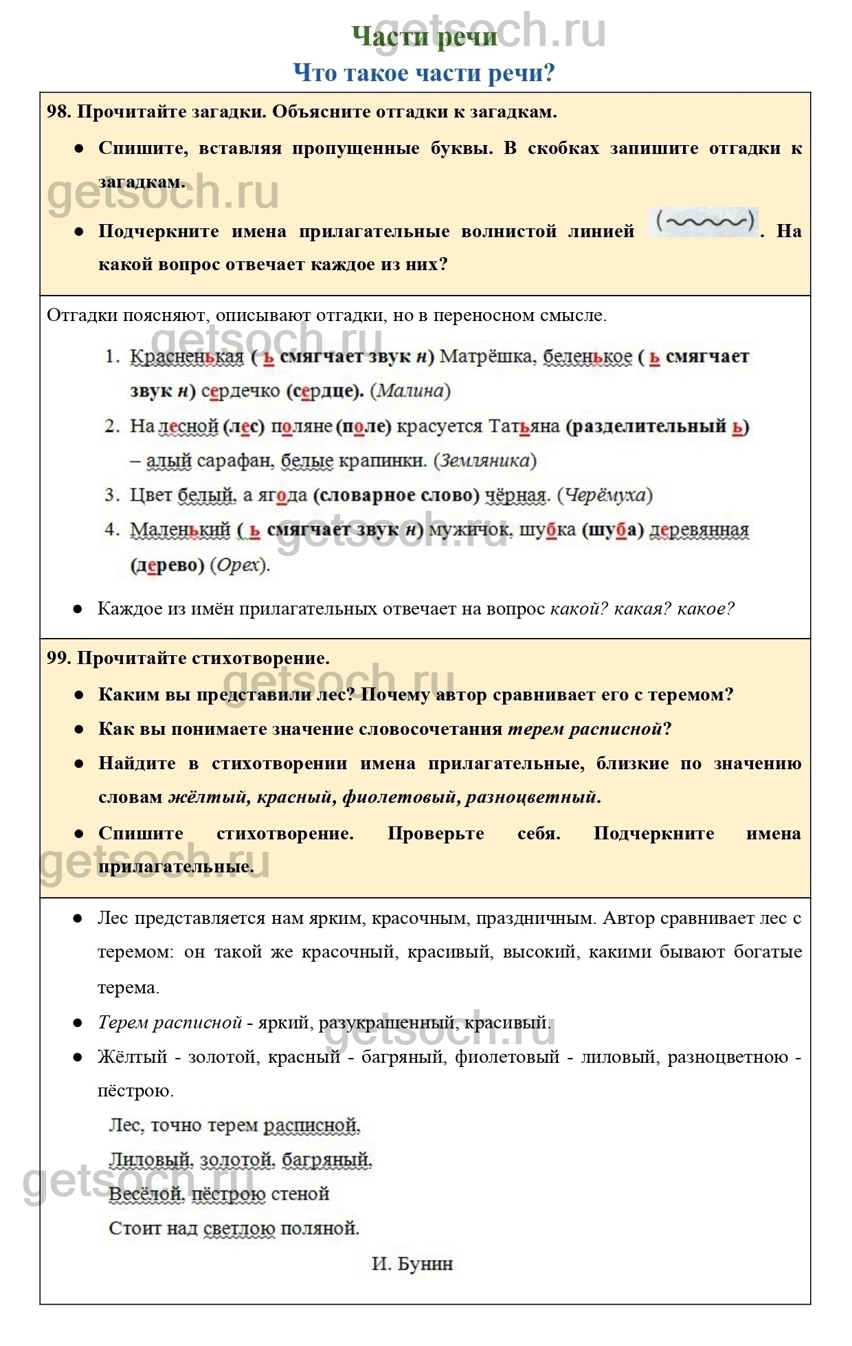 98. Прочитайте загадки. Объясните отгадки к загадкам.