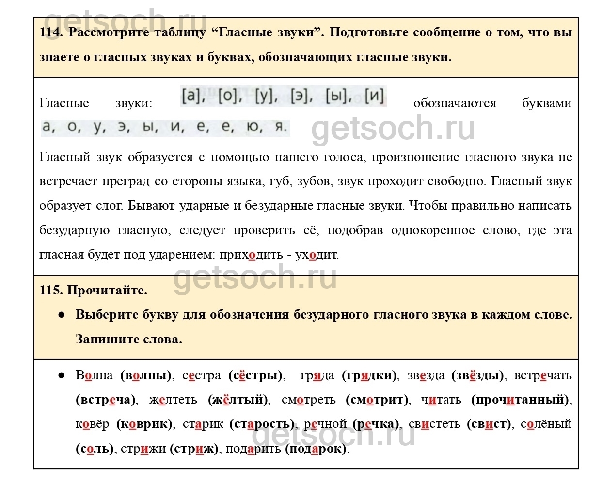 112. Рассмотрите таблицу “Гласные звуки”. Подготовьте сообщение о том, что вы знаете о гласных звуках и буквах, обозначающих гласные звуки.