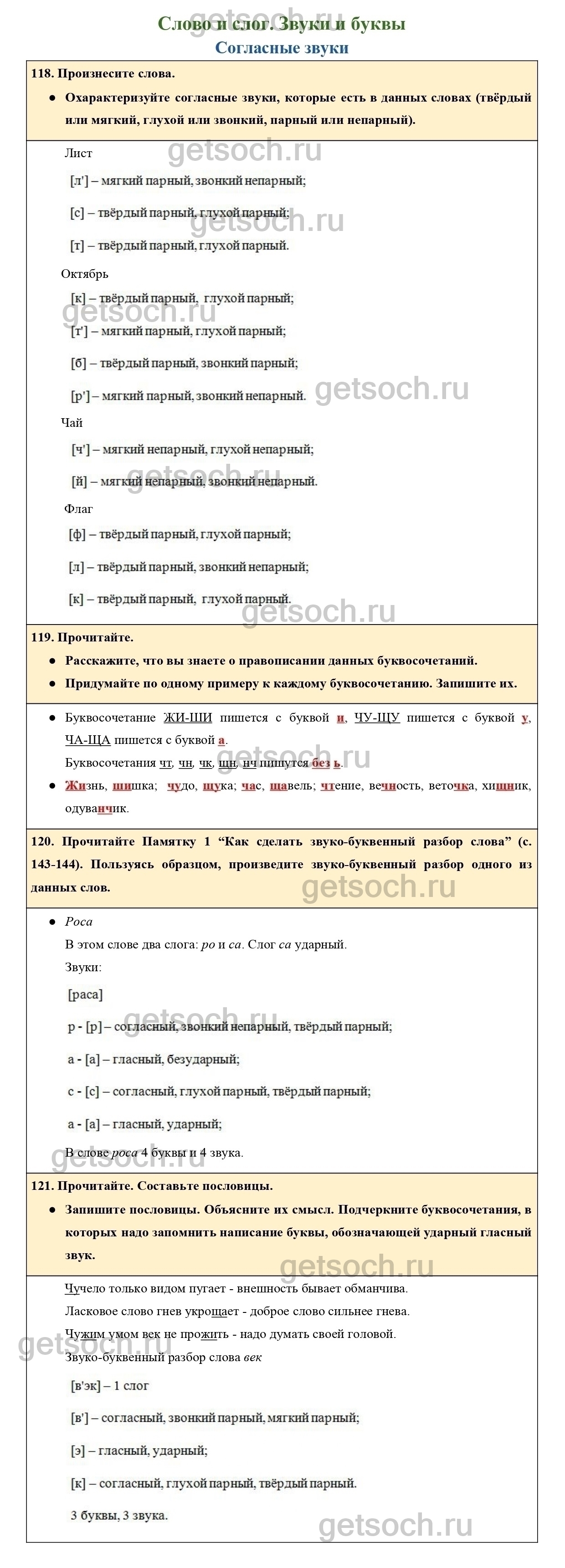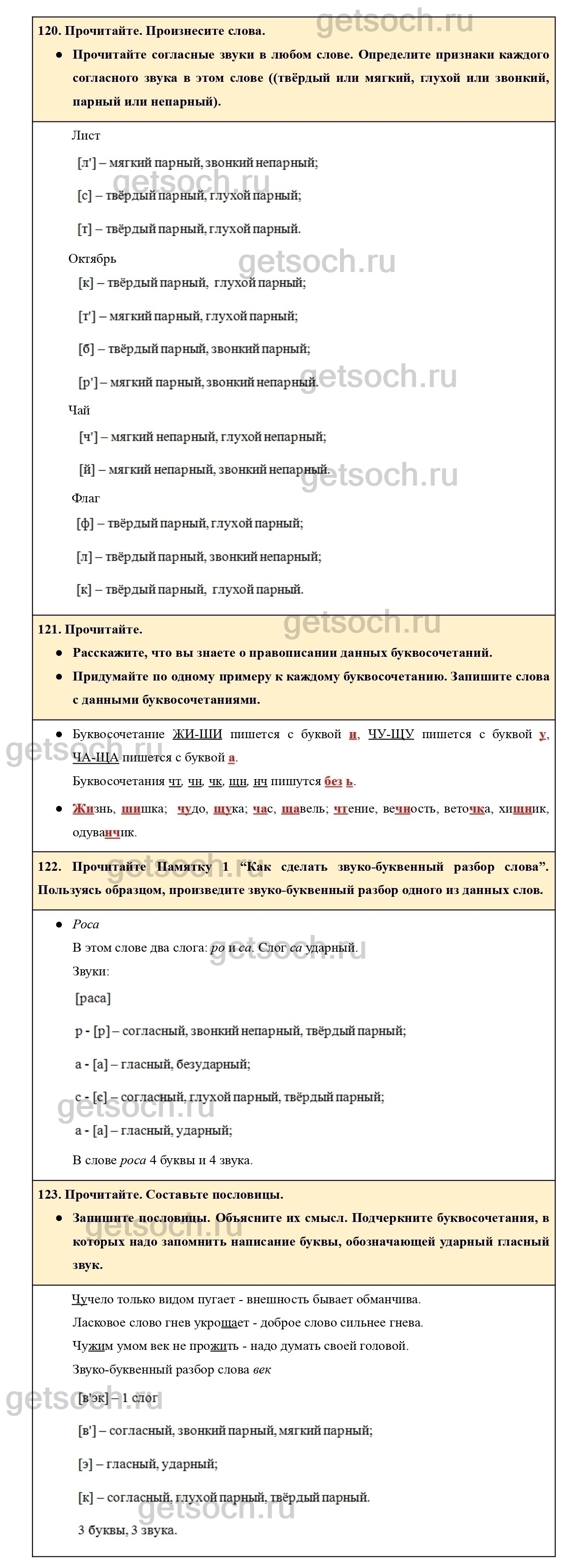 120. Прочитайте Памятку 1 “Как сделать звуко-буквенный разбор слова” (с. 143-144). Пользуясь образцом, произведите звуко-буквенный разбор одного из данных слов.