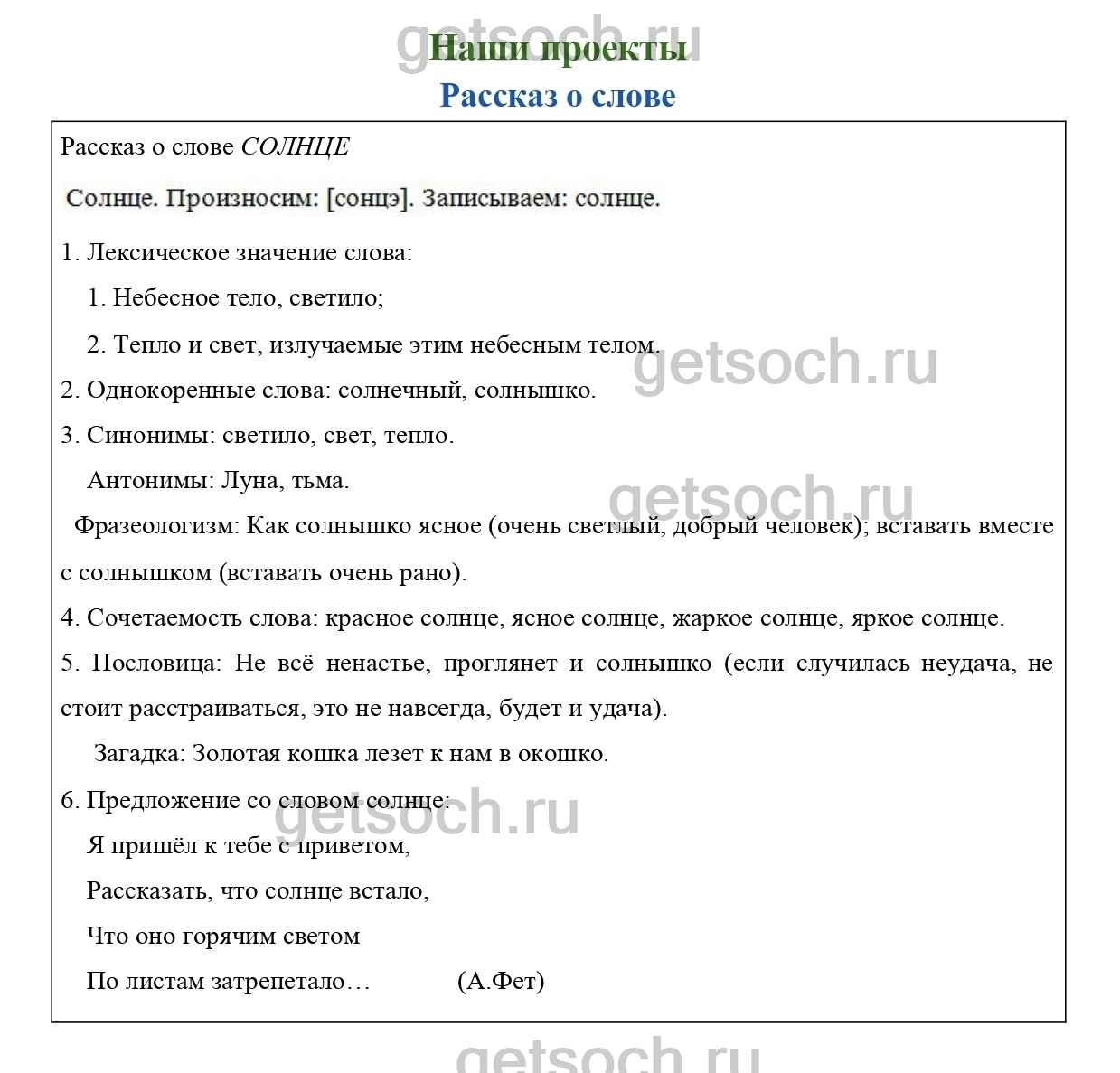 Рассказ о слове СОЛНЦЕ
