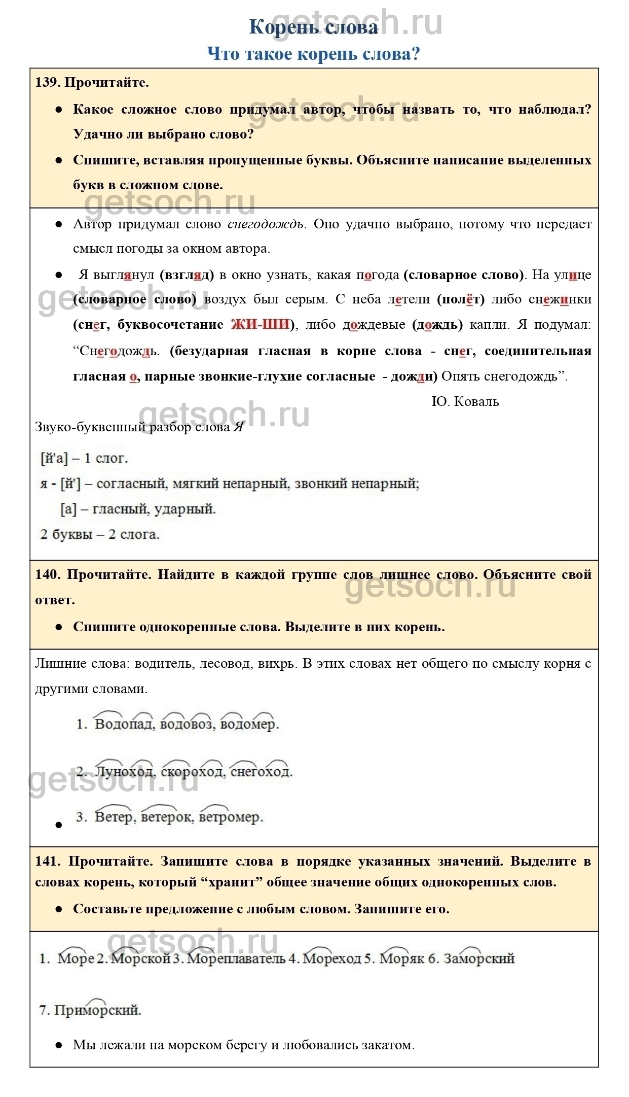 141. Прочитайте. Запишите слова в порядке указанных значений. Выделите в словах корень, который “хранит” общее значение общих однокоренных слов.