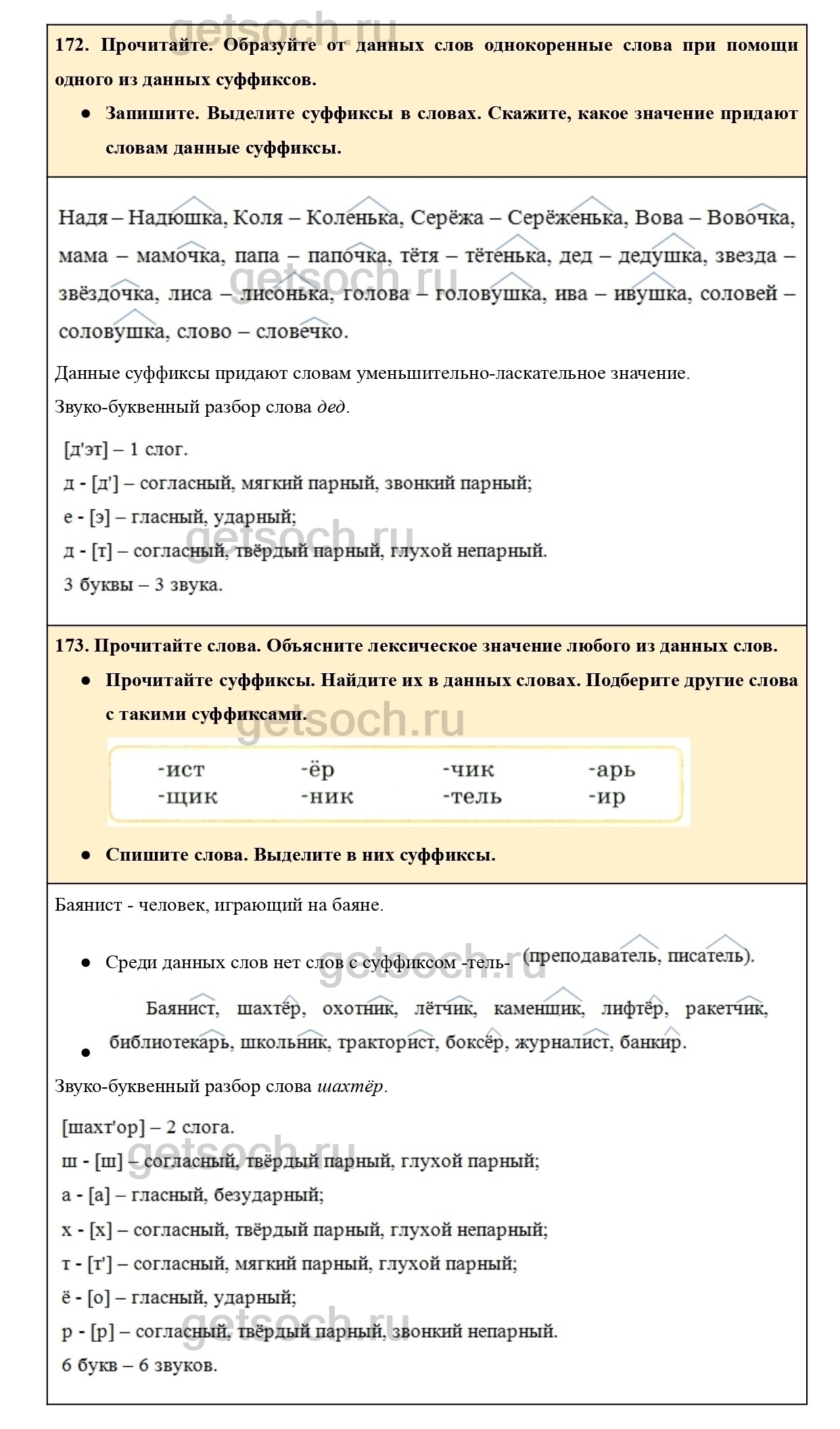 Обратите внимание, что с помощью данных суффиксов образуются слова-названия лиц по роду занятий.