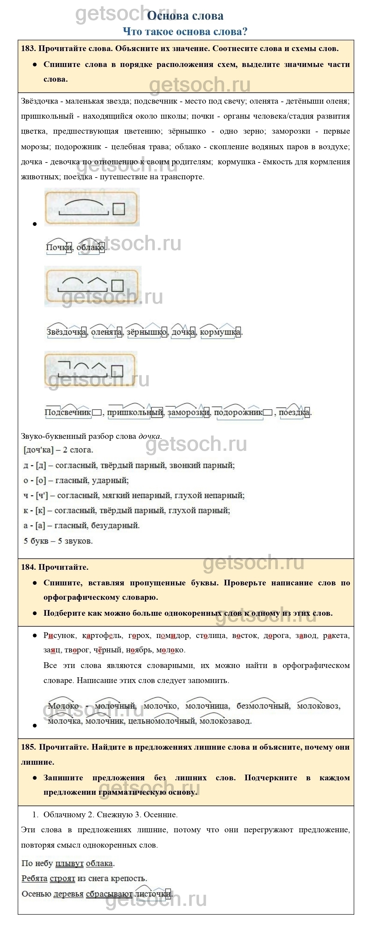 183. Прочитайте слова. Объясните их значение. Соотнесите слова и схемы слов.