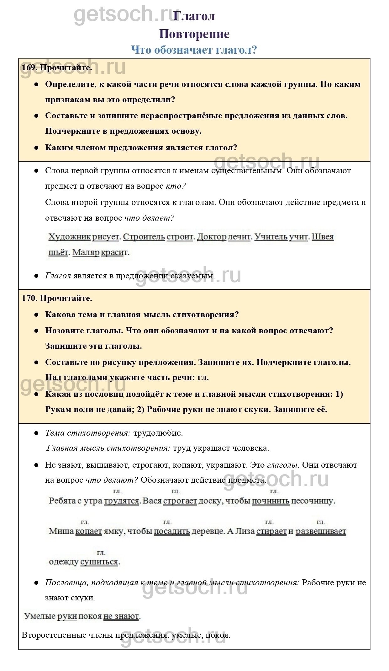 Назовите глаголы. Что они обозначают и на какой вопрос отвечают? Запишите эти глаголы.