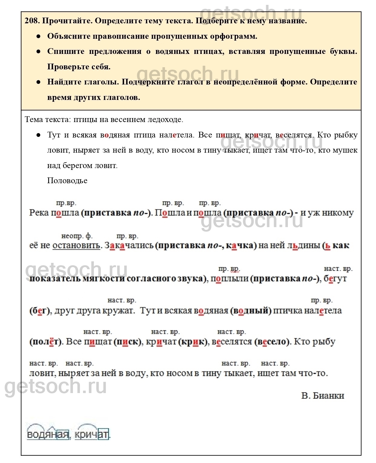 208. Прочитайте.Озаглавьте текст. Выделите в тексте три части.