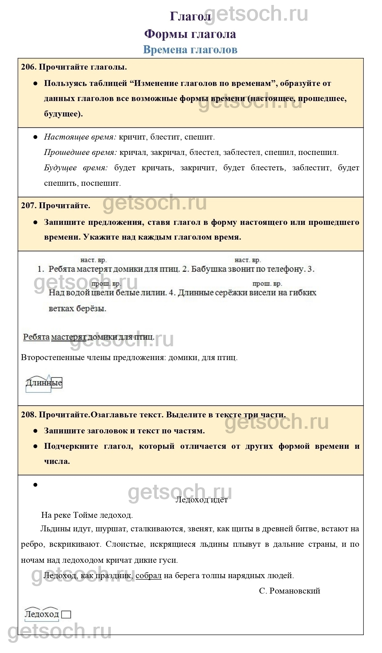 206. Прочитайте глаголы.