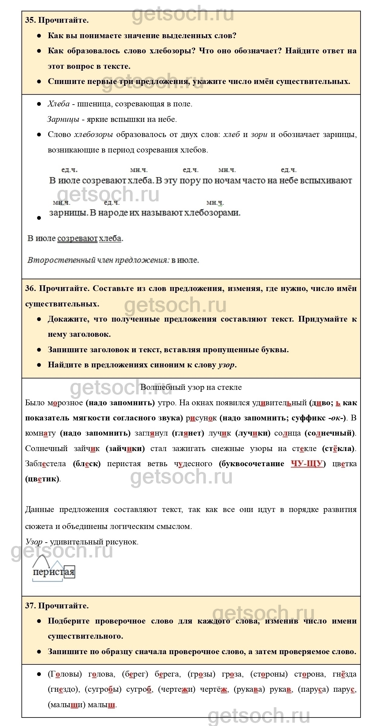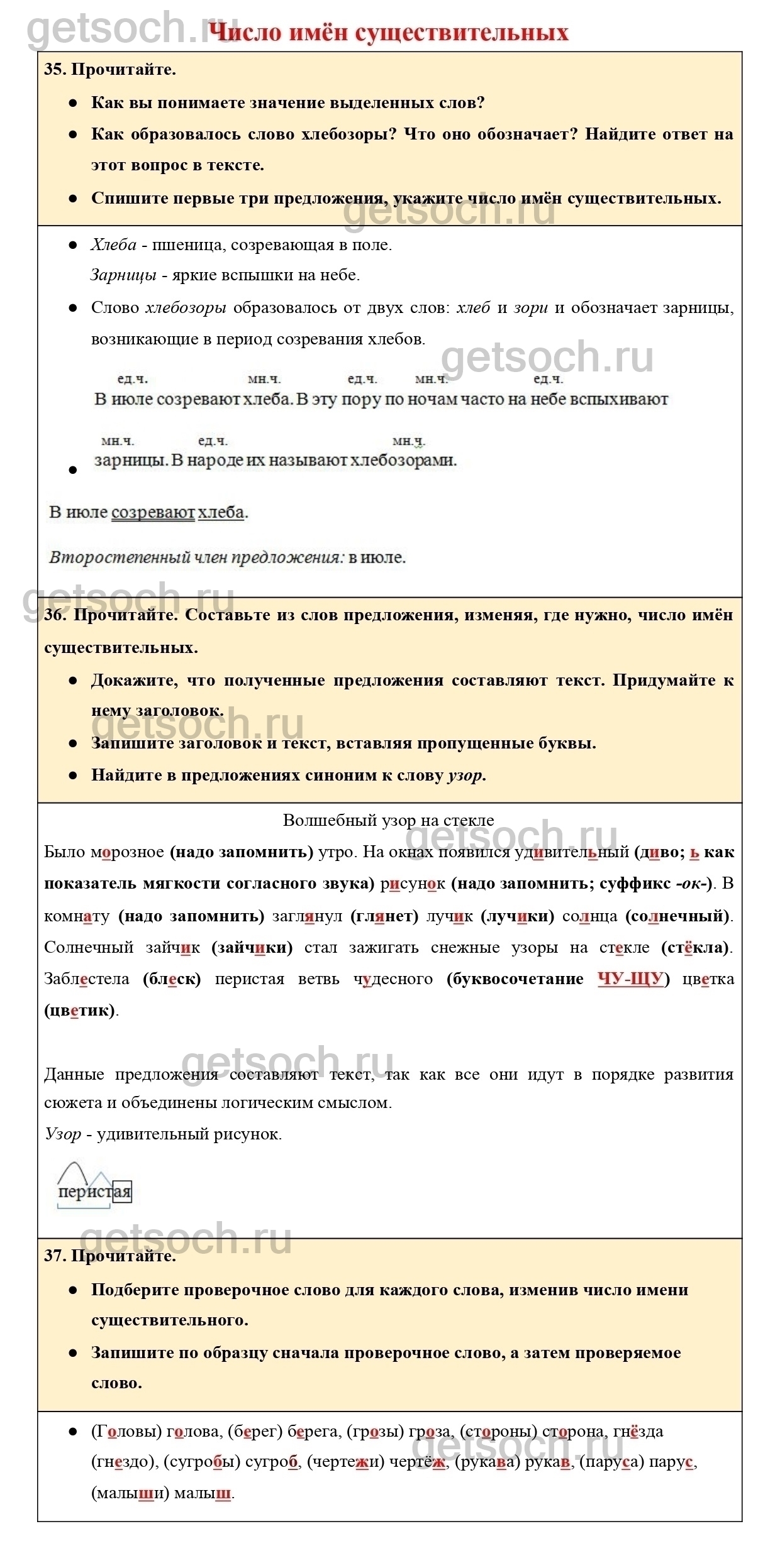 36. Прочитайте. Составьте из слов предложения, изменяя, где нужно, число имён существительных.
