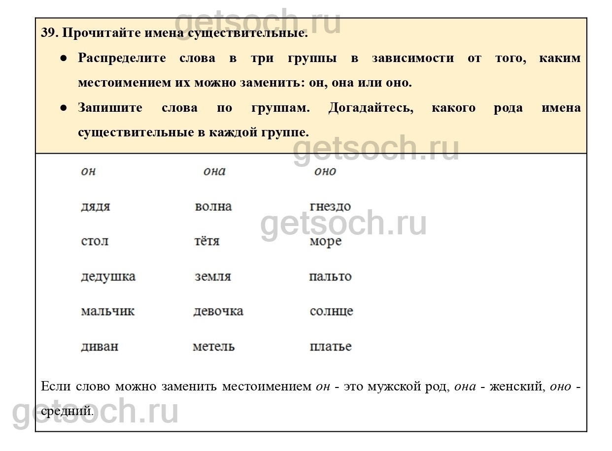 Распределите слова в три группы в зависимости от того, каким местоимением их можно заменить: он, она или оно.